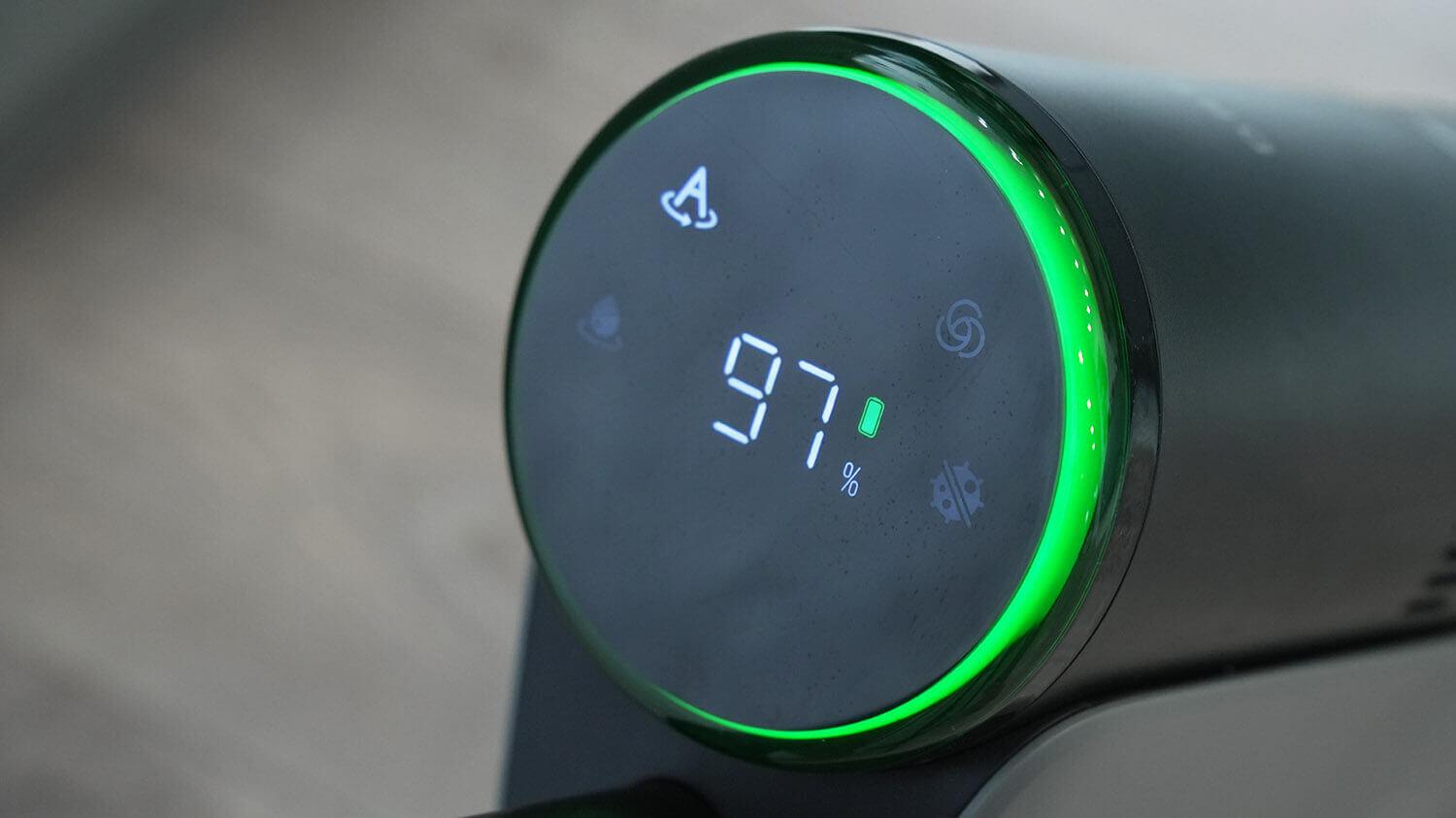Korpuso viršuje yra didelis, informatyvus ekranas, kuriame rodoma akumuliatoriaus įkrova, pasirinktas veikimo režimas, galios lygis ir techninės priežiūros pranešimai. „Dreame H13 Pro“ turi keturis pagrindinius veikimo režimus: automatinį, turbo, išankstinio dezinfekavimo ir siurbimo. Automatiniu režimu dulkių siurblys automatiškai reguliuoja siurbimo galią pagal grindų užterštumo lygį.