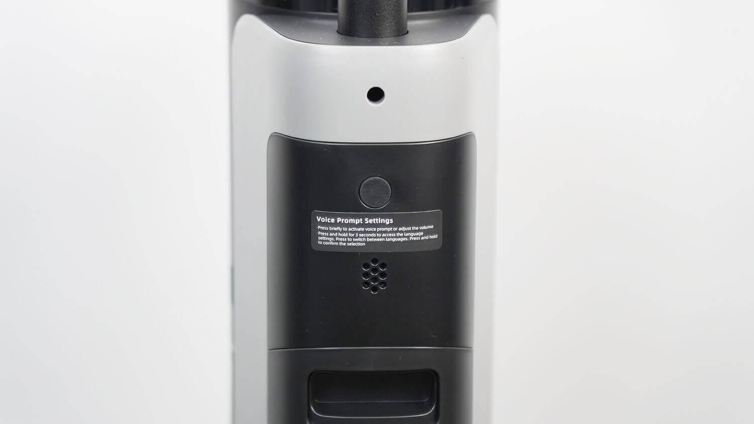 Dulkių siurblio gale yra dar vienas mygtukas, leidžiantis pritaikyti balso pranešimų kalbą. „Dreame H13 Pro“ taip pat kalba rusų kalba.