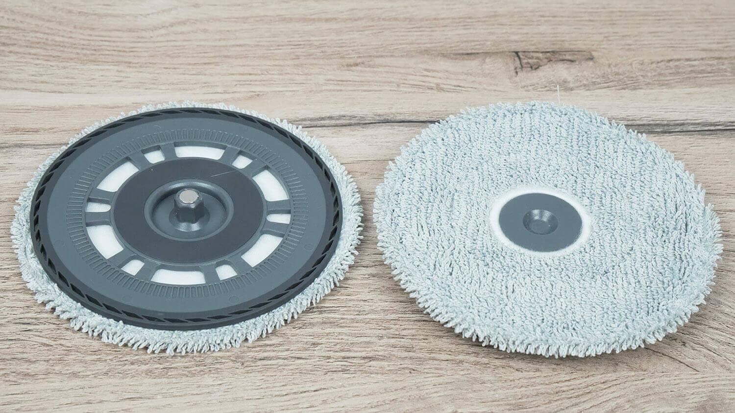 Šlapiam valymui robotas grindis valo dviem apvaliais, besisukančiais padais. Jie yra standartinio dizaino ir tvirtinami lipnia juosta „Velcro“.