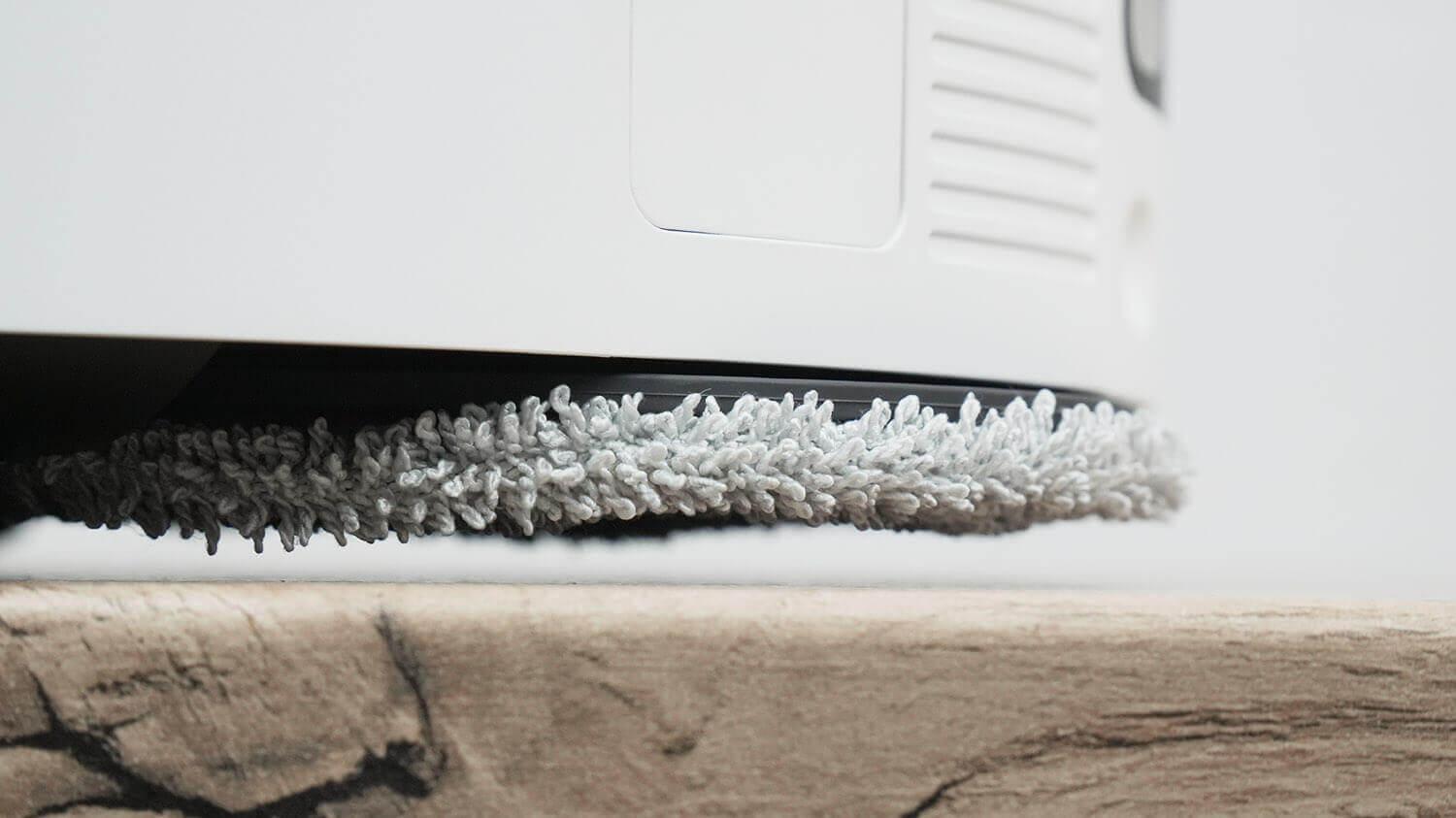 Nešvarumų šalinimo efektyvumas taip pat puikus. Šluostė tvirtai prispaudžiama prie grindų ir sugeria nešvarumus. Ji taip pat pašalina siaurą plotą palei grindjuostę, nes viena iš šluosčių yra prailginta. Tai privalumas!