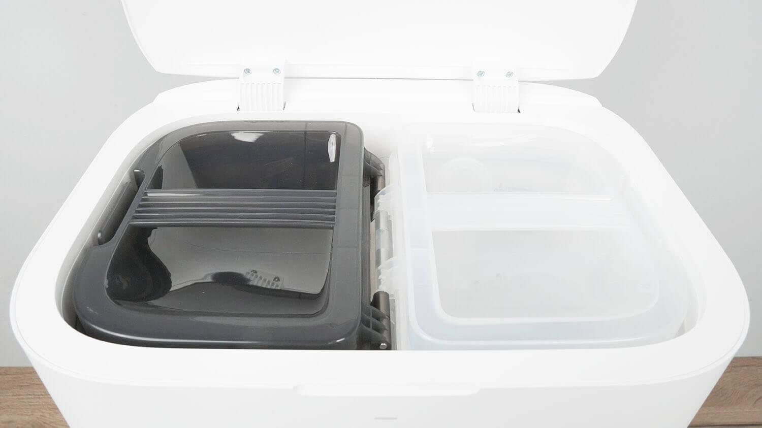 Vandens bakas tradiciškai yra po viršutiniu dangteliu. Nešvaraus vandens bako talpa yra 4 litrai, o švaraus vandens bako – 4,5 litro. Švaraus vandens bake yra vandens dezinfekavimo modulis.