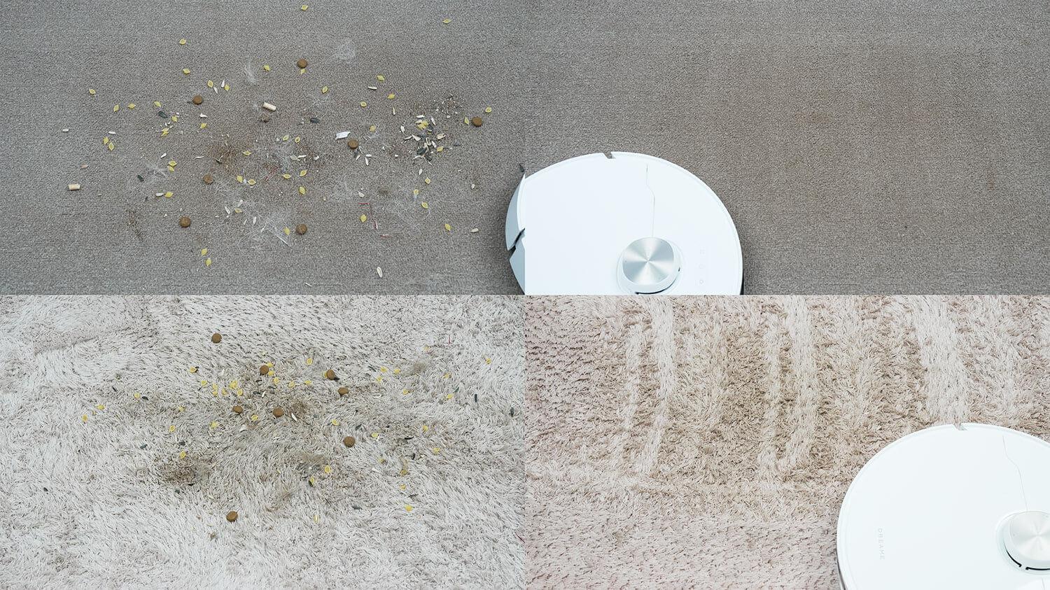 Be to, šiukšlės buvo išbarstytos ant trumpo plauko kilimo. Galiu pasakyti, kad „Dreame L40s Pro Ultra“ kruopščiai išvalė kilimą. Jis taip pat gali kruopščiai išvalyti vidutinio plauko kilimą. Testas išlaikytas!