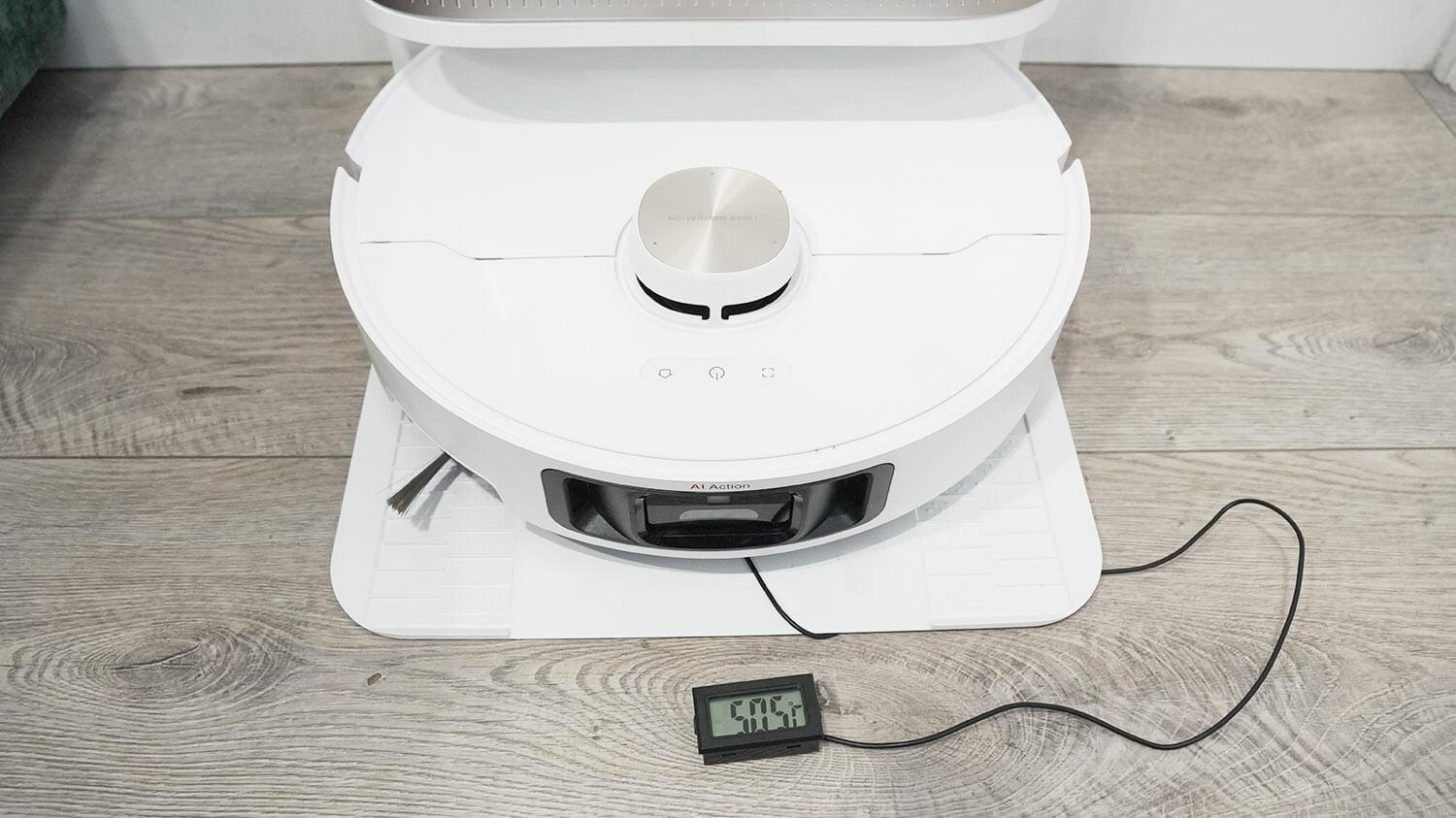 Taip pat išbandžiau baterijos veikimo laiką, kai robotas veikė maksimaliu galingumu ir įjungė šlapio valymo funkciją. Jis veikė 119 minučių, išvalydamas 102 kvadratinius metrus naudingo ploto. Iš tikrųjų to pakanka dviejų miegamųjų butui išvalyti du kartus. Tačiau verta paminėti, kad robotas gali tęsti valymą po įkrovimo bazėje, o tai reiškia, kad jis gali išvalyti dvigubai daugiau. Palyginti su X50, robotas išvalė tą patį plotą vienu įkrovimu, todėl sumažėjusi baterijos talpa pastebimai nepaveikė jo baterijos veikimo laiko.