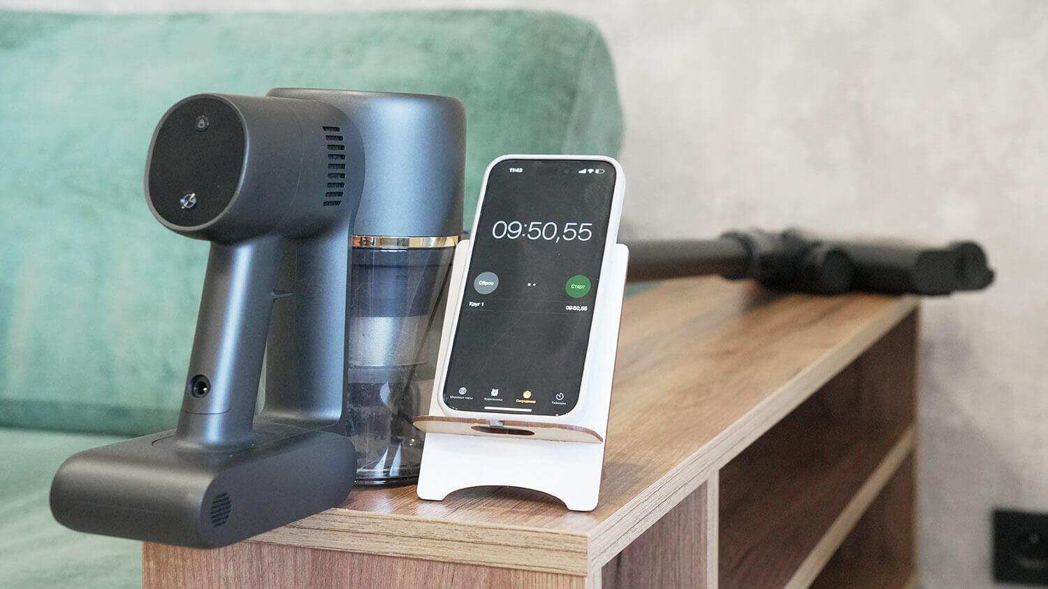 Ir galiausiai, pereikime prie testų. Pirmiausia patikrinkime „Dreame R10 Pro Aqua“ baterijos veikimo laiką turbo režimu su prijungtu pagrindiniu priedu. Jis veikė 9 minutes ir 50 sekundžių. Palyginimui, standartinis... R10 Pro Jis parodė 10 minučių 24 sekundžių veikimo laiką, ir tai greičiausiai lemia šiek tiek silpnesnė naujojo modelio baterija. Ekranas, kuris eikvoja šiek tiek energijos, taip pat galėjo turėti įtakos. Bet kokiu atveju, baterijos veikimo laikas yra panašus į daugumos panašių įrenginių.