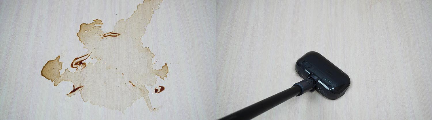 Taip pat išbandžiau grindų blizgiklio veiksmingumą. Jis pašalino net sunkiai įveikiamas dėmes, tokias kaip pridžiūvusios kavos ir padažo dėmės. Tai užtruko apie 3 minutes. Palyginimui, specializuoti vertikalūs plaunamieji dulkių siurbliai tą pačią užduotį atlieka vidutiniškai per 5 minutes. Tačiau plaunamieji dulkių siurbliai šiuo atžvilgiu yra daug efektyvesni, nes jie savaime išsivalo naudojimo metu ir nepalieka dryžių. Naudojant šį grindų blizgiklio antgalį, pagalvėlės užsikemša nešvarumais ir trina jas per grindis. Valymo metu jas reikės kelis kartus nuimti, nuplauti ir vėl pakeisti.