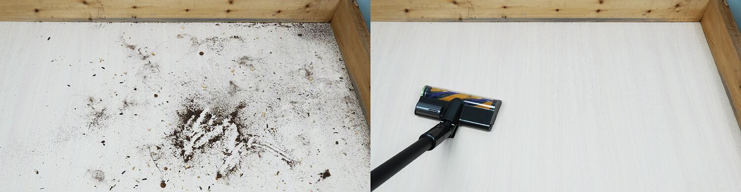 Kalbant apie galią, automatiniu režimu dulkių siurblys lengviausiu režimu galėjo išvalyti šiukšles iš 10 mm gylio tarpo, o antruoju režimu – iki 20 mm gylio plyšių, o sunkiausiu – iki 35 mm gylio. Taigi, tai tikrai galingas vertikalus dulkių siurblys.