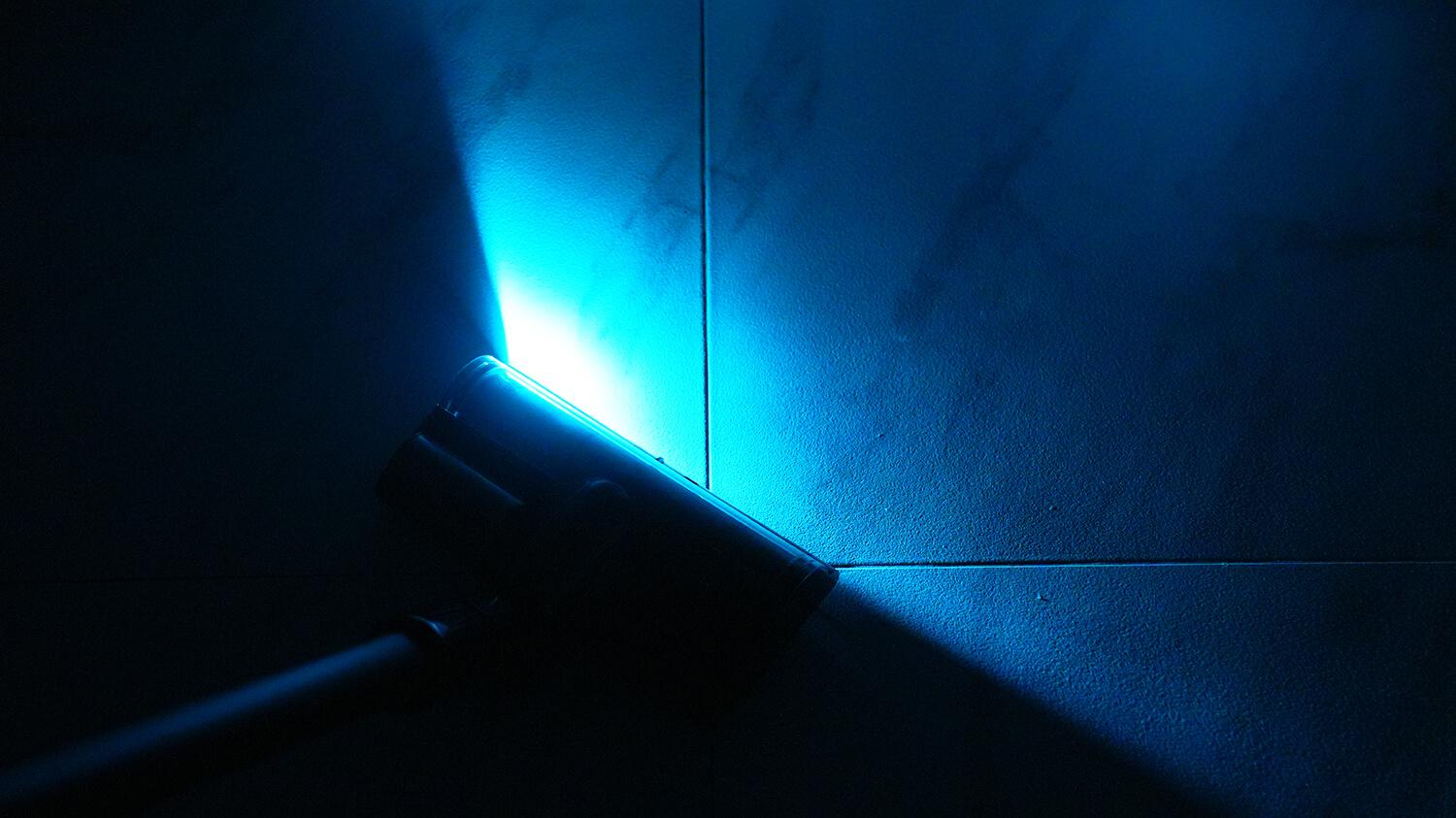 Foninis apšvietimas turi platesnį LED spindulio kampą, todėl pažiūrėkite, kaip gerai jis apšviečia grindis ir šiukšles tamsoje.