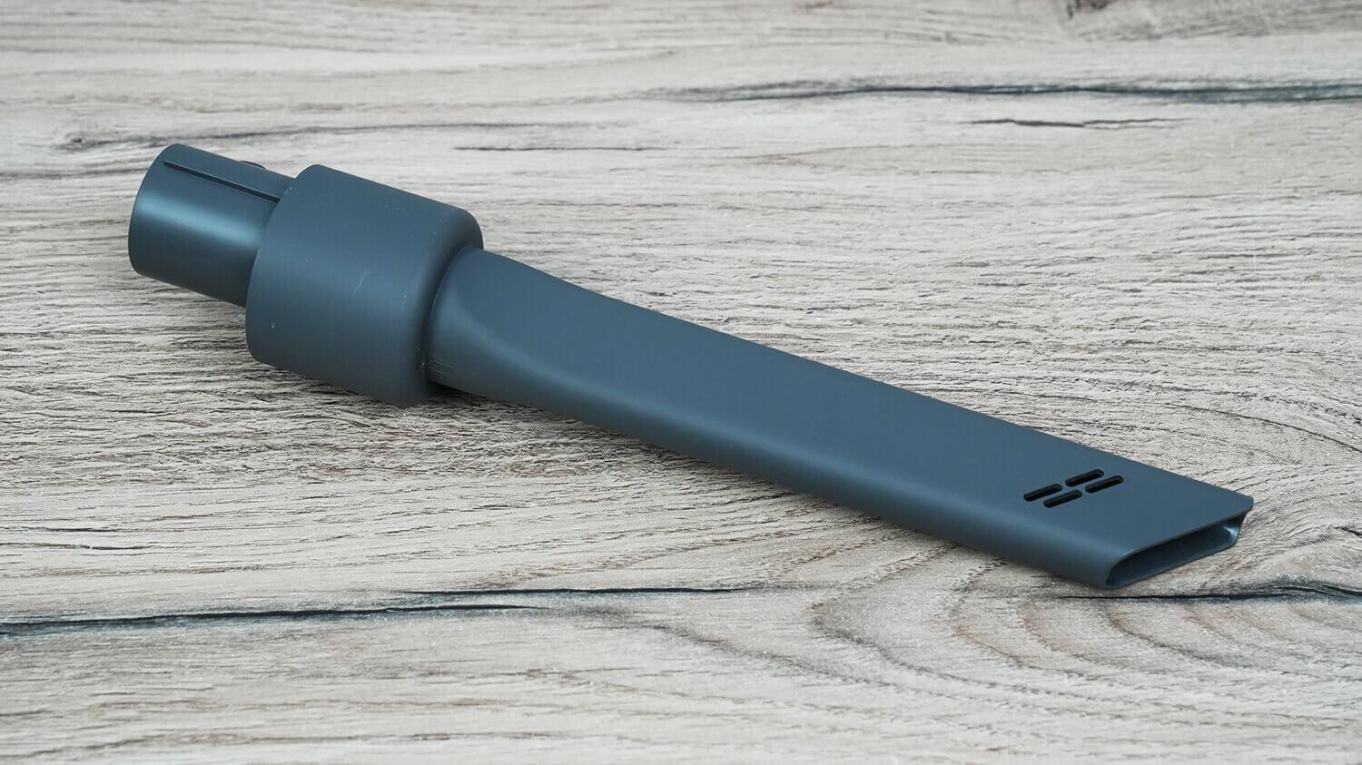 Baldų apmušalų valymo antgalis turi turbo šepetį su silikoninėmis mentelėmis. Norėdami jį pasiekti, jums reikės plokščio atsuktuvo arba monetos.