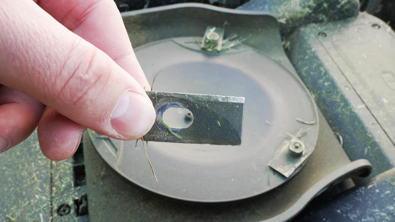 Matome, kad po mėnesio naudojimo jie buvo pažeisti, bet galiu pasakyti, kad buvo pora neįprastų situacijų. Pirma, pjoviau per labai aukštą žolę. Antra, žolėje jis rado plieninę vielą ir apsivyniojo ja aplink diską, todėl peiliai lietėsi su viela. Tikriausiai tai ir sukėlė šią problemą. Laimei, peiliai yra komplekte ir pagal taisykles juos reikia keisti kas 100 valandų.