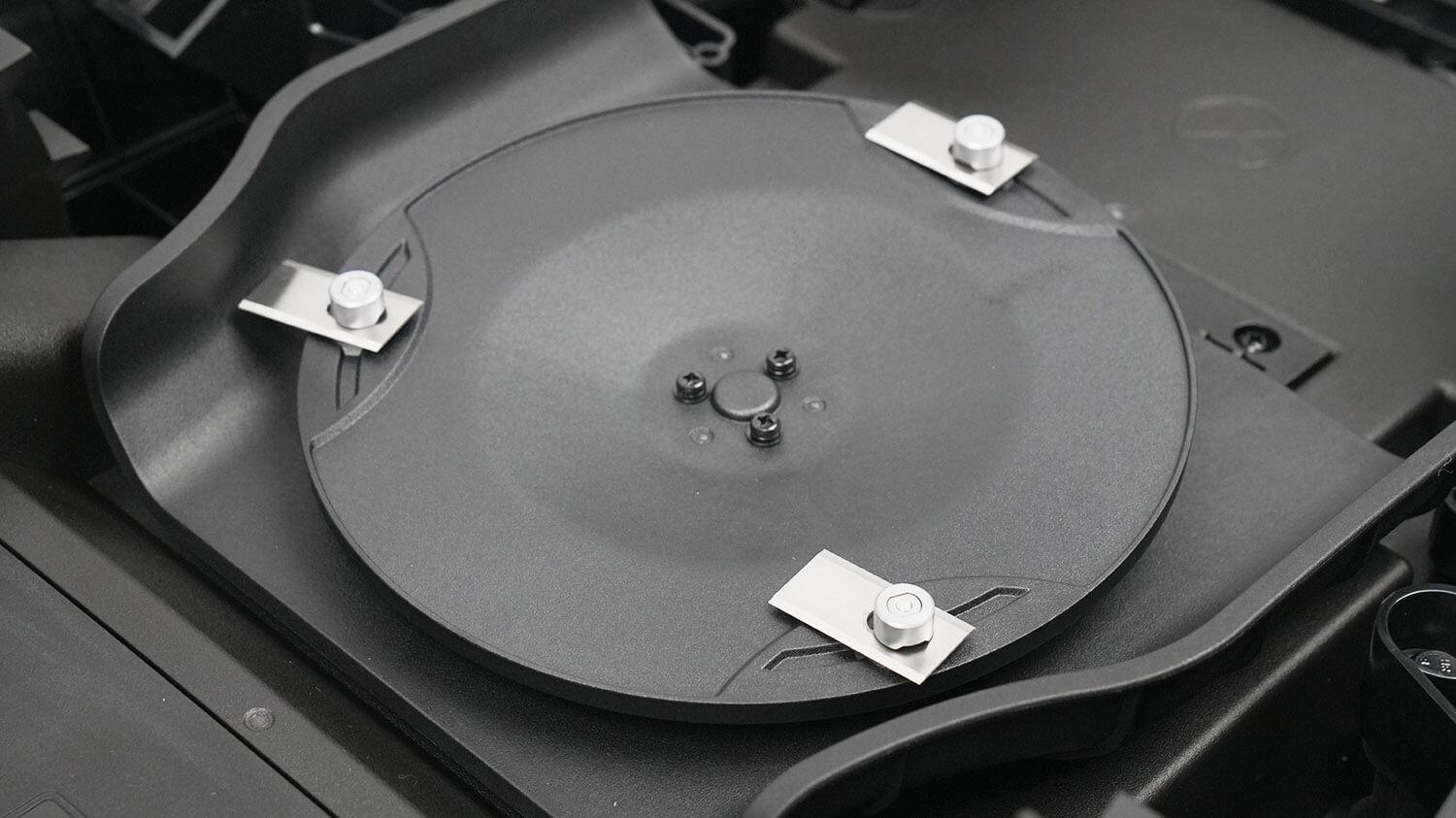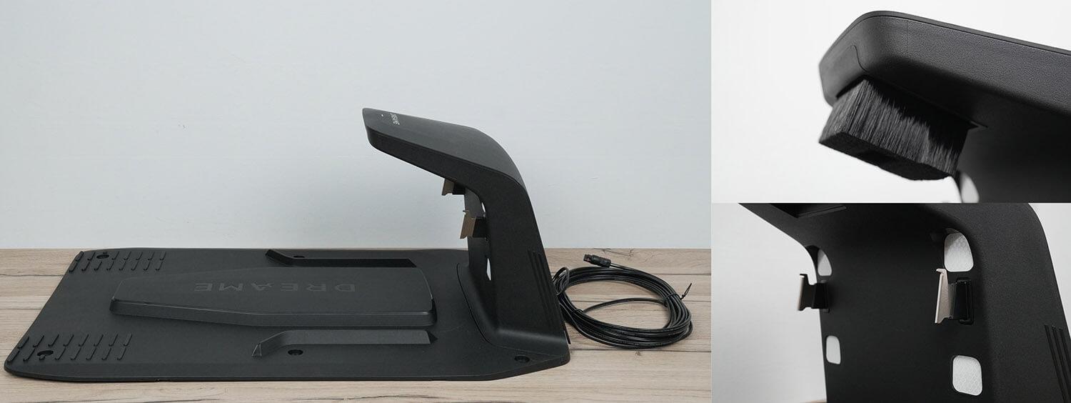 Kalbant apie pagrindą, „Dreame Roboticmower A1“ įkraunamas ant jo. Įkrovimo stotelėje reikia įmontuoti specialų šepetėlį, kad būtų galima išvalyti lidaro jutiklį, kai robotas prijungtas prie pagrindo.