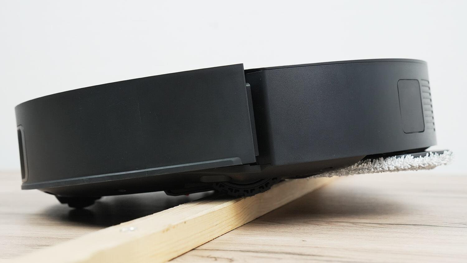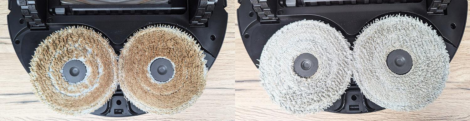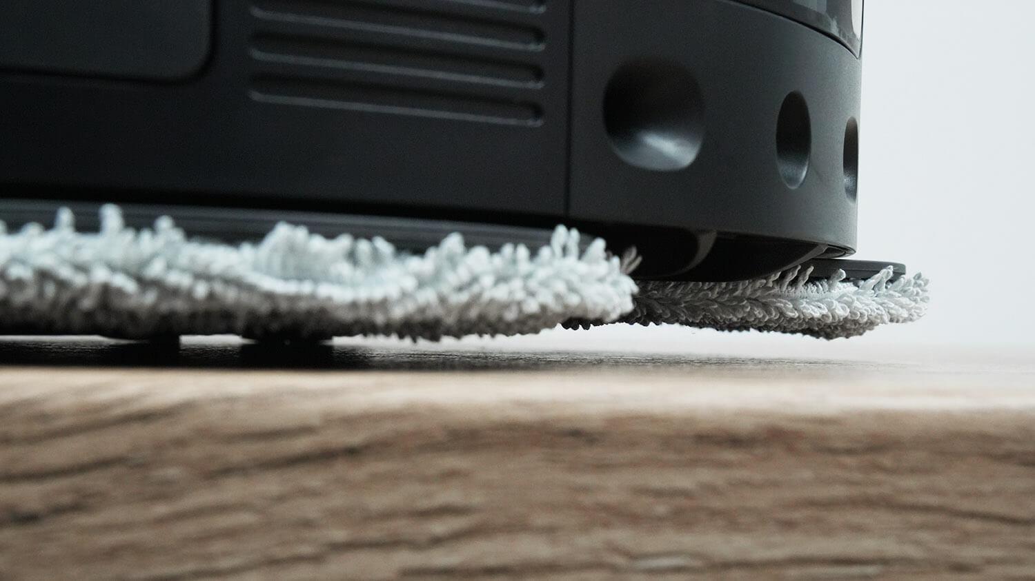- Maksimalus šlapio valymo efektyvumas. Taip yra dėl ištraukiamos valymo šluostės, kuri leidžia robotui kruopščiai išvalyti vietas palei grindjuostes ir baldus. Be to, dėl atnaujintų algoritmų šluostė geriau valo kampus ir siauras erdves po baldais. Beje, roboto nešvarumų šalinimas yra geresnis nei ankstesnių šios linijos modelių. Tai taip pat gali būti dėl to, kad šluostės po plovimo yra karštesnės.