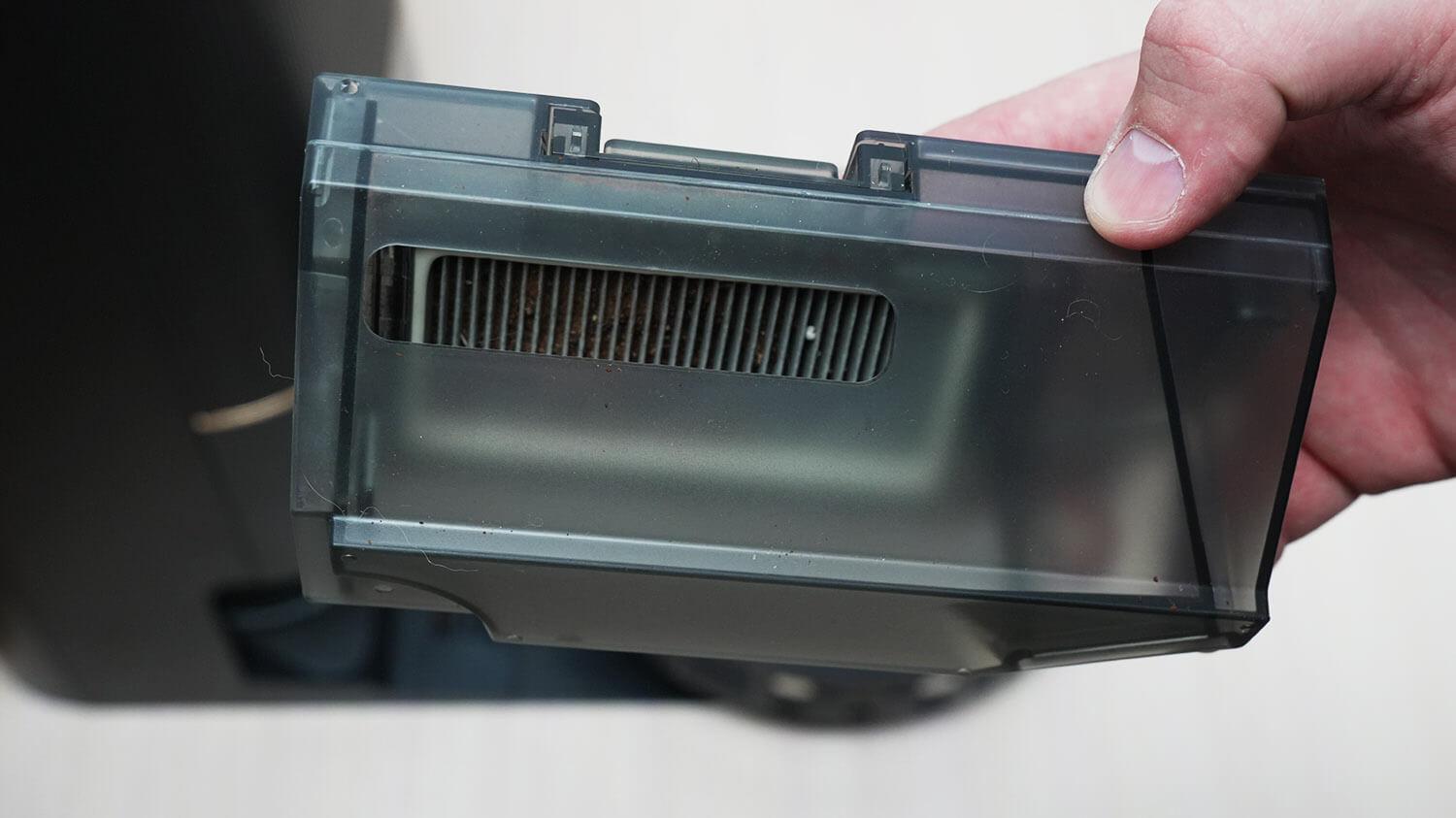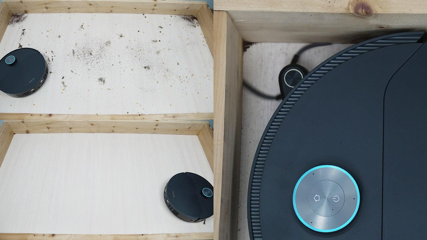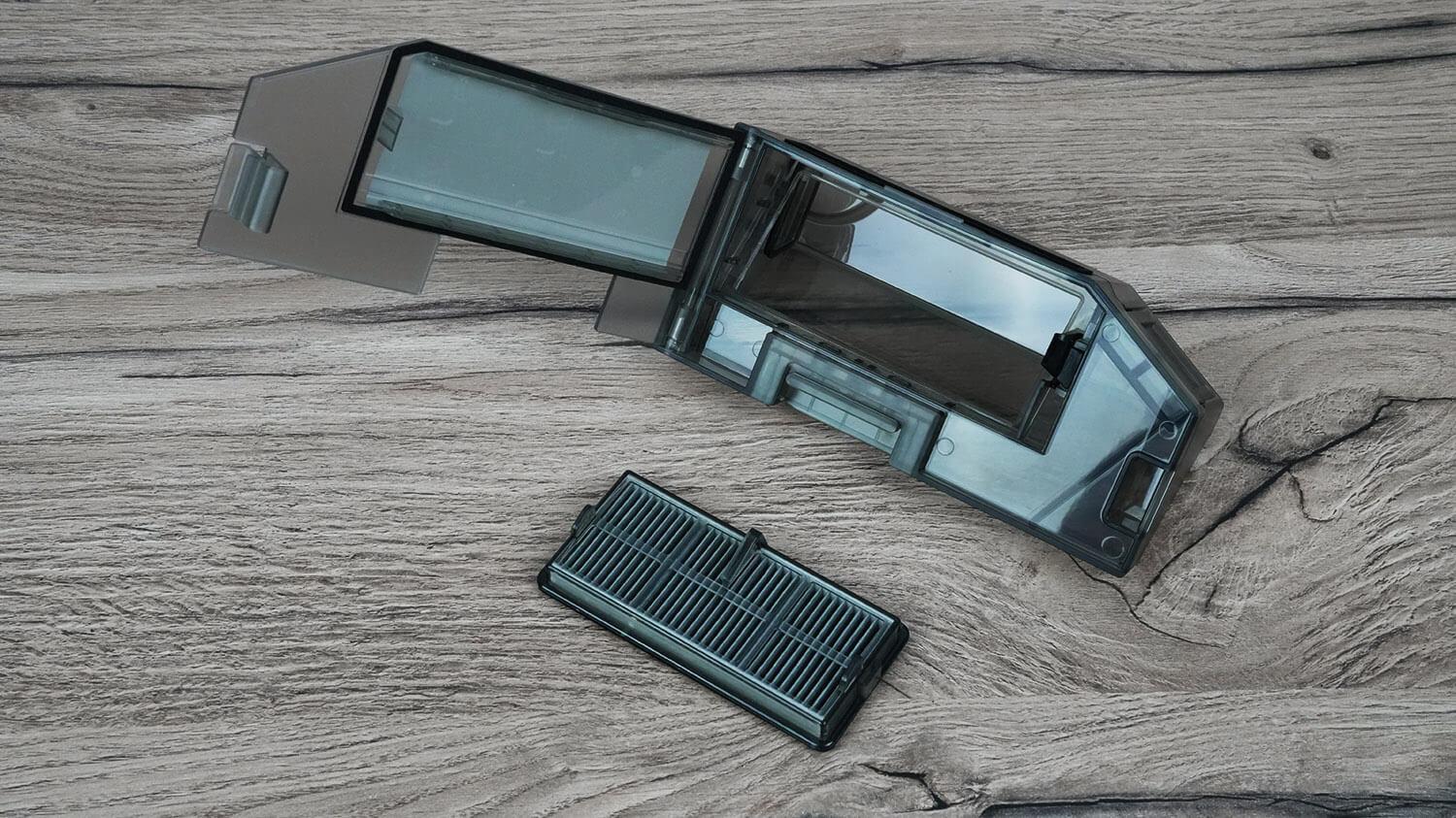 Iškart po „nešvarumų testų“ patikrinau, kaip gerai robotas dulkių siurblys išsivalo. Prieš grįždamas į stotelę, dulkių konteineris buvo beveik pilnas. Po savaiminio valymo testo dulkių konteineris buvo visiškai tuščias, todėl šis robotas turi gerą savaiminio valymo funkciją! Rezultatai puikūs.