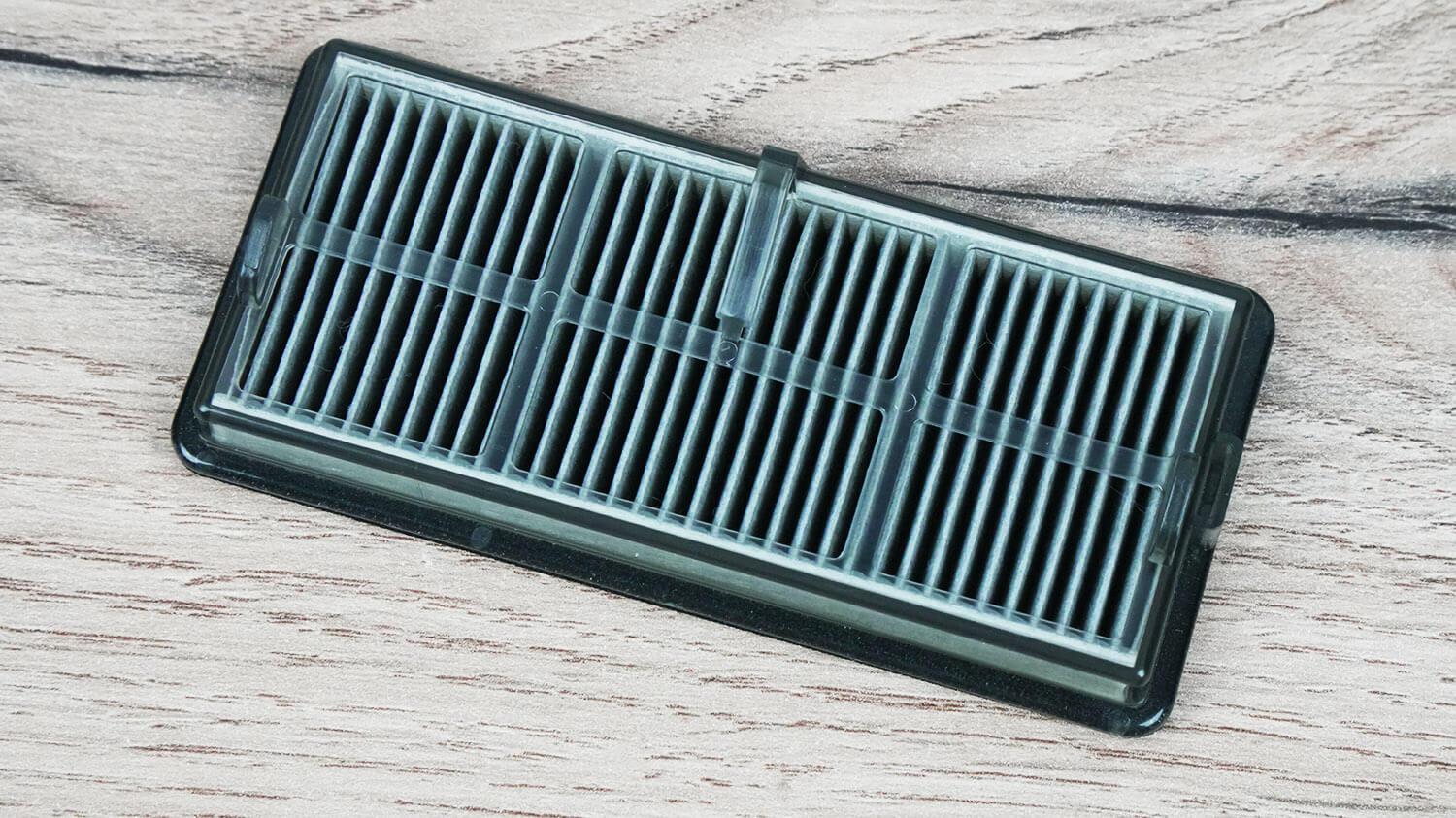 Dulkių surinktuvas yra po viršutiniu dangčiu. Filtravimo sistema pagrįsta tik HEPA filtrais.