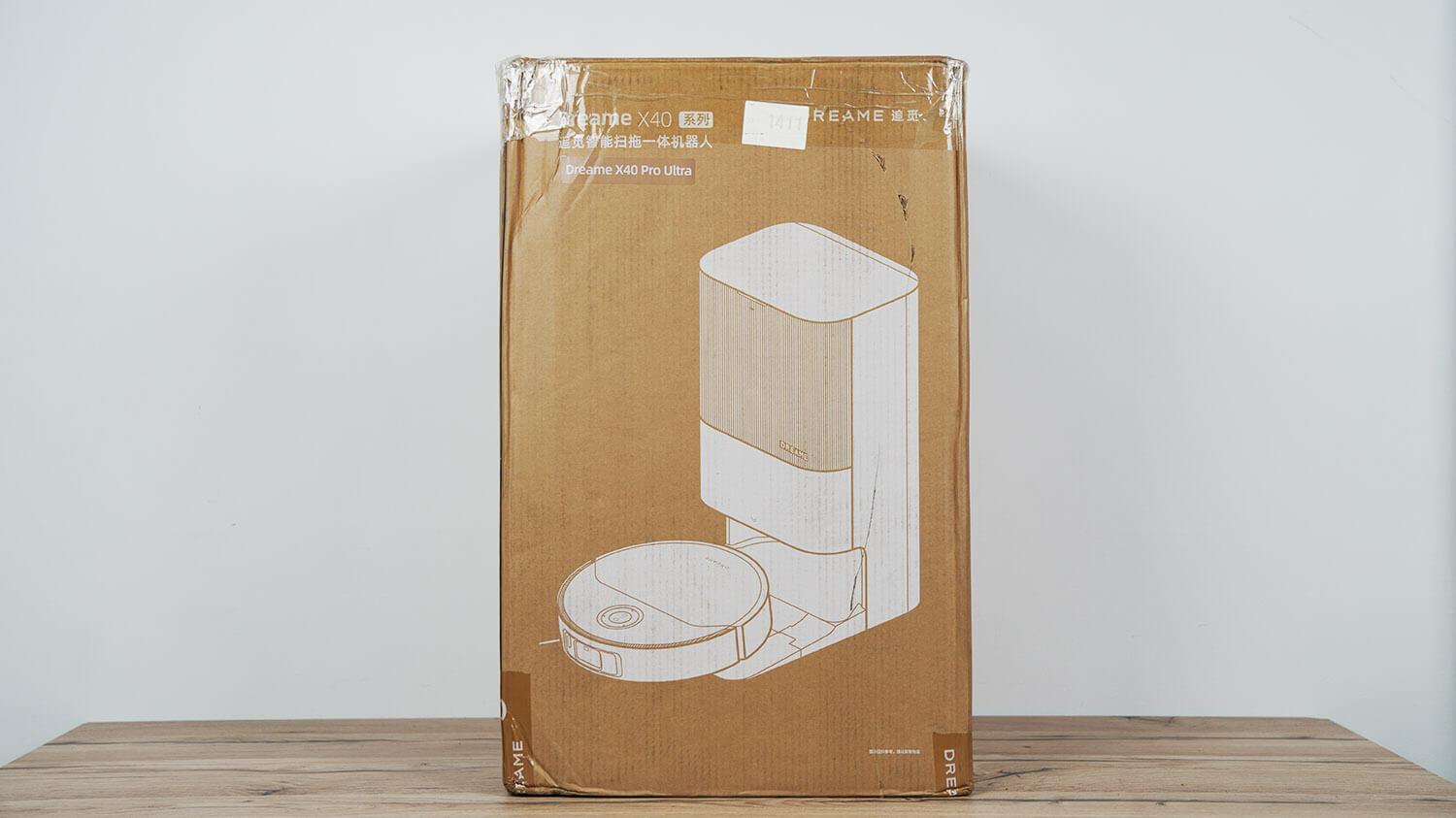 Dabar pereikime prie pačios apžvalgos. Pradėkime nuo pakuotės turinio. „Dreame X40 Pro Ultra“ atkeliavo šioje firminėje dėžutėje: