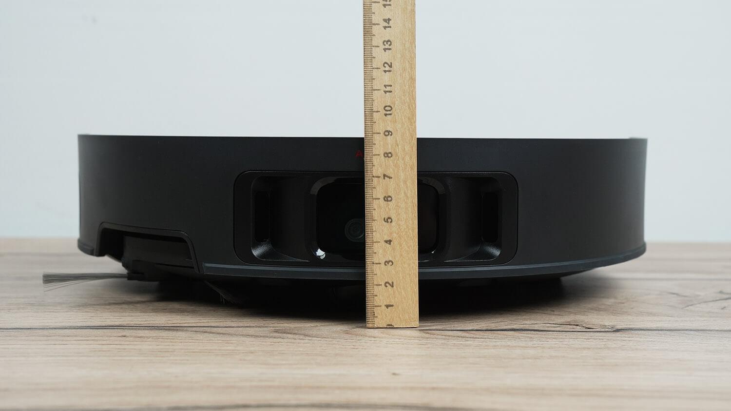 Taip pat išbandžiau minimalų aukštį, kurį gali pasiekti „Dreame X40 Pro Ultra“ su paslėptu lidaru. Nustačiau lidaro nustatymus į ekstremalaus aprėpties režimą, kad maksimaliai padidinčiau jo pasiekiamumą. Robotas lengvai naršo po baldais, kurių storis siekia vos 9 cm. Ši funkcija veikia puikiai!