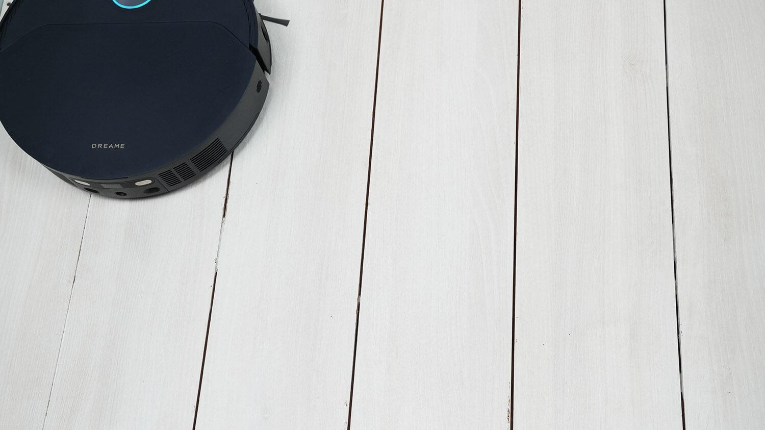 - Ištraukiamas šoninis šepetys visiškai panaikina poreikį šluoti šiukšles iš kampų. Skirtingai nuo D formos robotų, apvalus „Dreame Bot X40 Pro Ultra“ išlaiko manevringumą. Jis greitai ir tvarkingai valdo kampus ir aplink kėdžių kojas, be nereikalingo prisilietimo ar judesių.