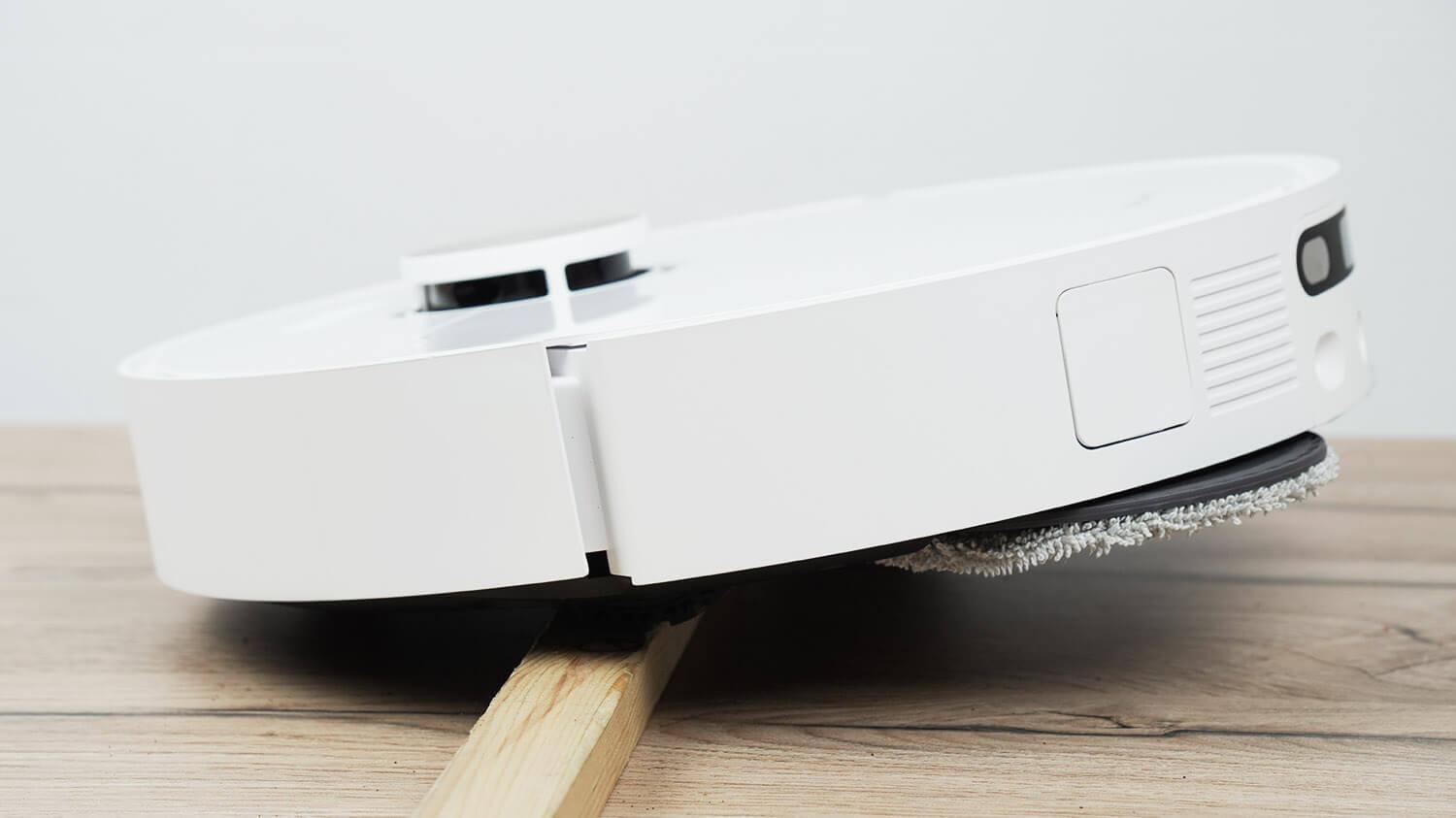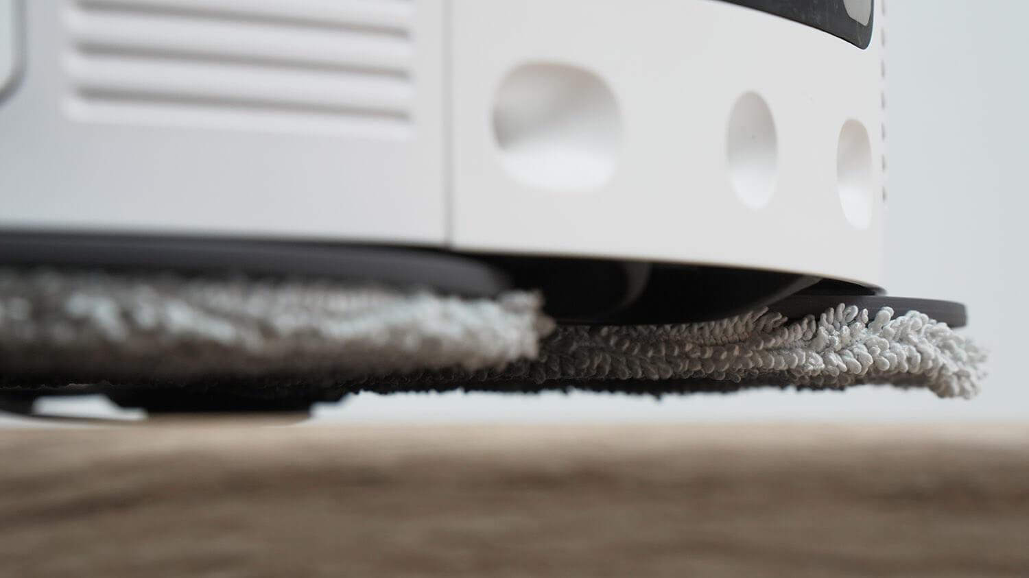 - Maksimalus šlapio valymo efektyvumas. Taip yra dėl ištraukiamos valymo šluostės, kuri leidžia robotui kruopščiai išvalyti vietas palei grindjuostes ir baldus. Be to, dėl atnaujintų algoritmų šluostė geriau valo kampus ir siauras erdves po baldais. Beje, roboto nešvarumų šalinimas yra geresnis nei ankstesnių šios linijos modelių. Tai taip pat gali būti dėl to, kad šluostės po plovimo yra karštesnės.
