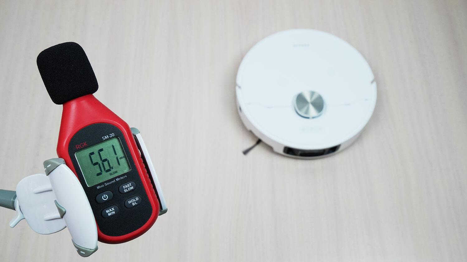 Taip pat pastebėjau, kad savaiminio valymo stotelė yra labai tyli. Tai patikrinau. „Dreame X40 Ultra Complete“ savaiminio valymo stotelės triukšmo lygis yra apie 67 dB. Tuo tarpu jos savaiminio valymo atitikmens „Dreame D10 Plus Gen 2“ triukšmo lygis yra apie 75 dB.