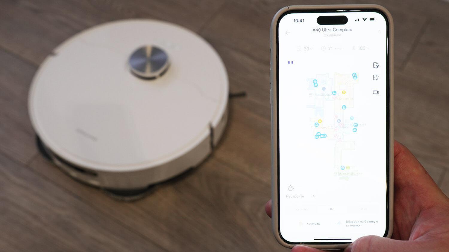 Kalbant apie funkcijas, „Dreame X40 Ultra Complete“ valdomas per patentuotą „Dreamehome“ programėlę. Prisijungimas prie tinklo yra sklandus, be jokių regioninių užraktų ar laikinų sprendimų. Programėlė yra rusų kalba, o pats robotas taip pat kalba rusiškai. Viskas patogu ir intuityvu.