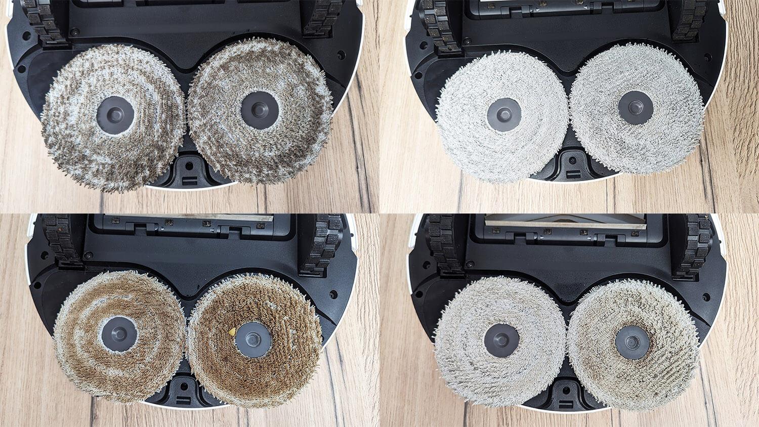 Kalbant apie šlapią kilimų valymą, yra keletas robotų elgesio variantų. Išskirsiu tris įdomiausius. Pirmasis – automatinis valymo šluosčių pakėlimas, kai jos patenka į kilimus, todėl robotas dulkių siurblys vienu metu gali siurbti ir šluostyti grindis, palikdamas kilimus sausus ir švarius.
