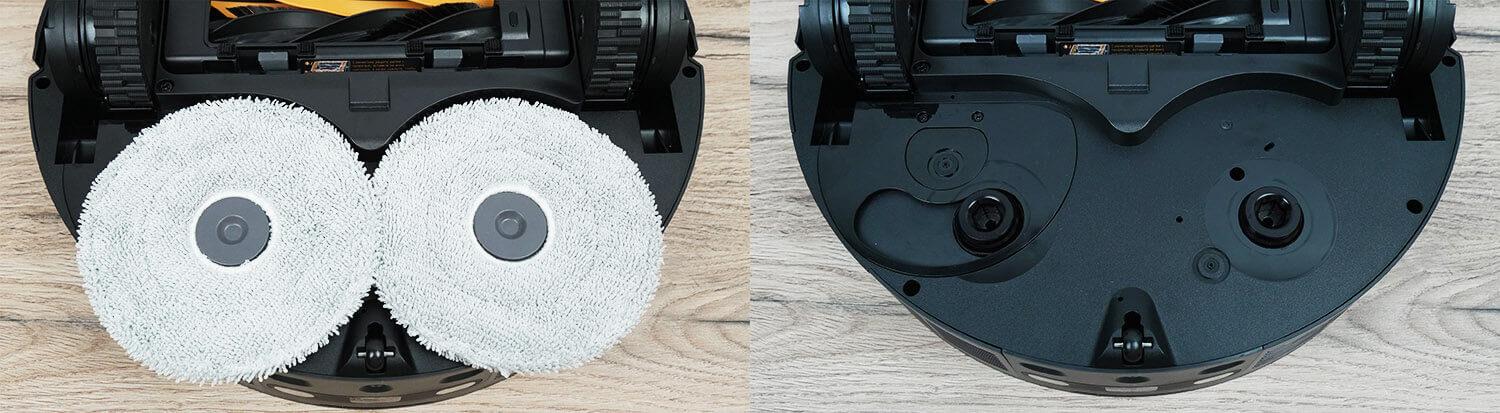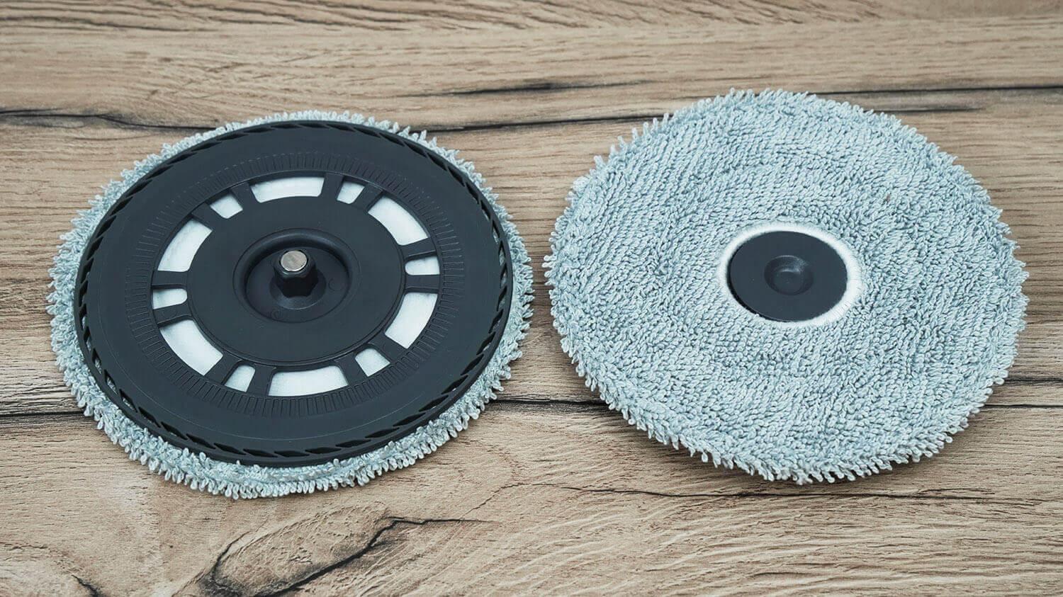 Šlapiam valymui robotas grindis valo dviem apvaliais, besisukančiais padais. Jie yra standartinio dizaino ir tvirtinami lipnia juosta „Velcro“.