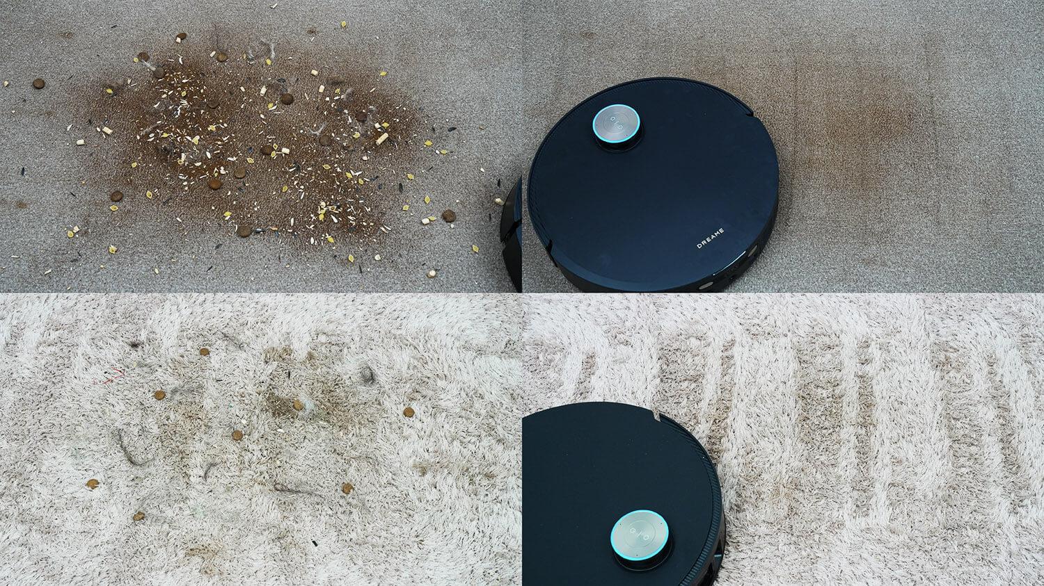 Be to, šiukšlės buvo išbarstytos ant trumpo plauko kilimo. Galiu pasakyti, kad „Dreame X50 Ultra Complete“ kruopščiai išvalė kilimą. Jis taip pat gali kruopščiai išvalyti vidutinio plauko kilimą. Testas išlaikytas!