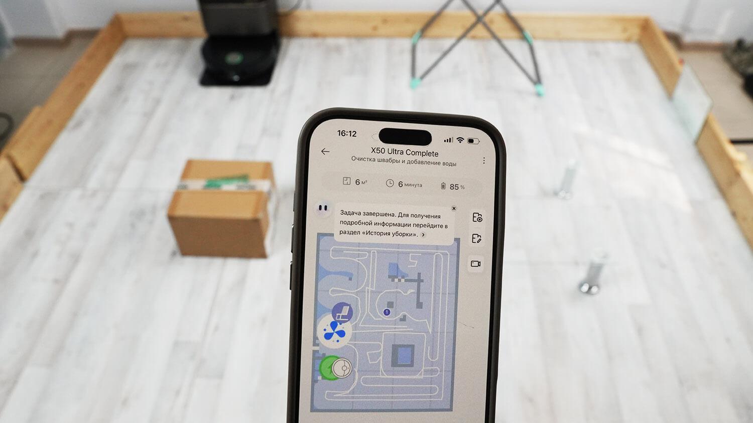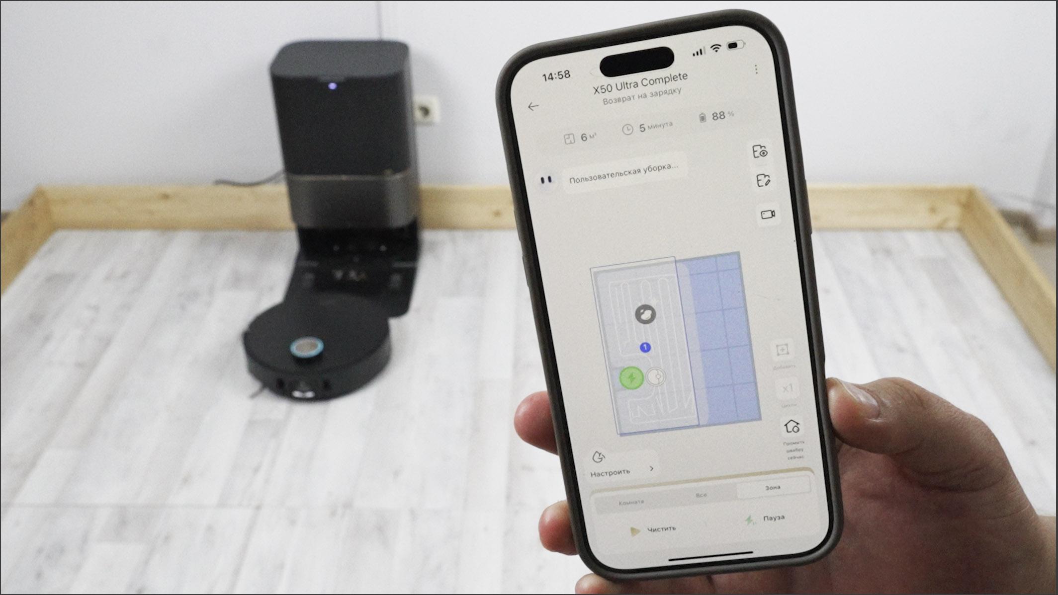 Kalbant apie funkcijas, „Dreame X50 Ultra Complete“ valdomas per patentuotą „Dreamehome“ programėlę. Jis be jokių problemų prisijungia prie tinklo, nėra jokių regioninių užraktų ar laikinų sprendimų. Programėlė yra rusų kalba, o pats robotas taip pat kalba rusiškai. Viskas patogu ir intuityvu.