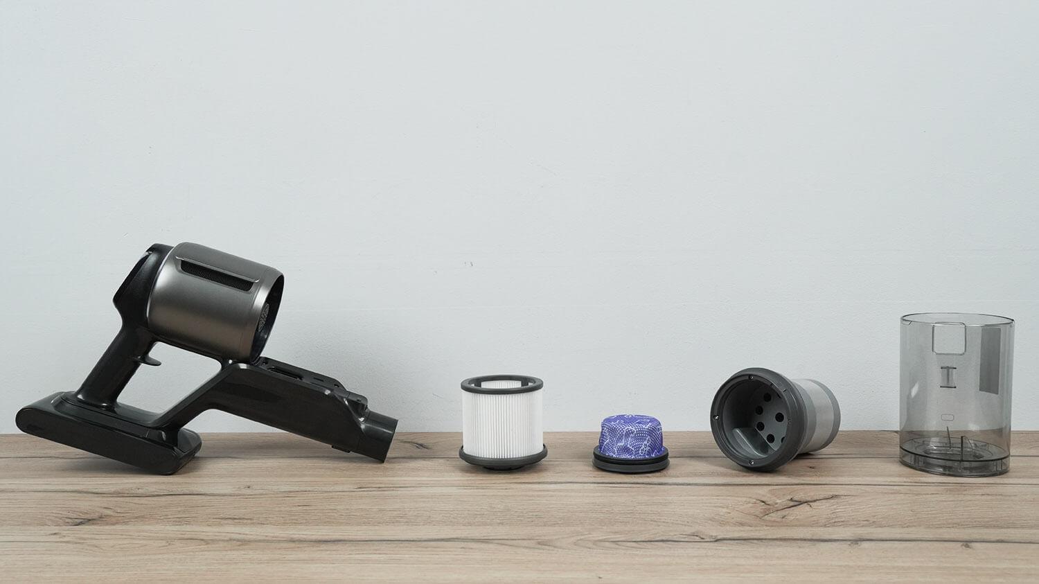 Dulkių surinkimo talpykla yra nuimama. Tai taip pat geras dalykas. Pačiame pagrindiniame įrenginyje yra HEPA-14 filtras. Dulkių surinkimo talpykloje taip pat yra papildomas audinio filtras ir ciklonas su tinkleliu. Gamintojas leidžia visą filtravimo sistemą plauti vandeniu. Tik prieš dedant filtrus atgal į dulkių siurblį, būtinai juos kruopščiai išdžiovinkite.
