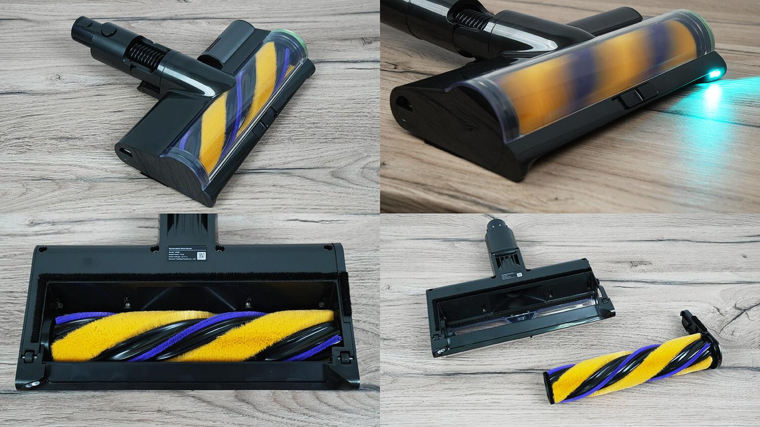 Papildomų priedų rinkinys yra identiškas „Dreame Z30“. Apmušalų priedas turi turbo šepetį su silikoninėmis mentelėmis. Norėdami jį pasiekti, jums reikės plokščio atsuktuvo arba monetos.