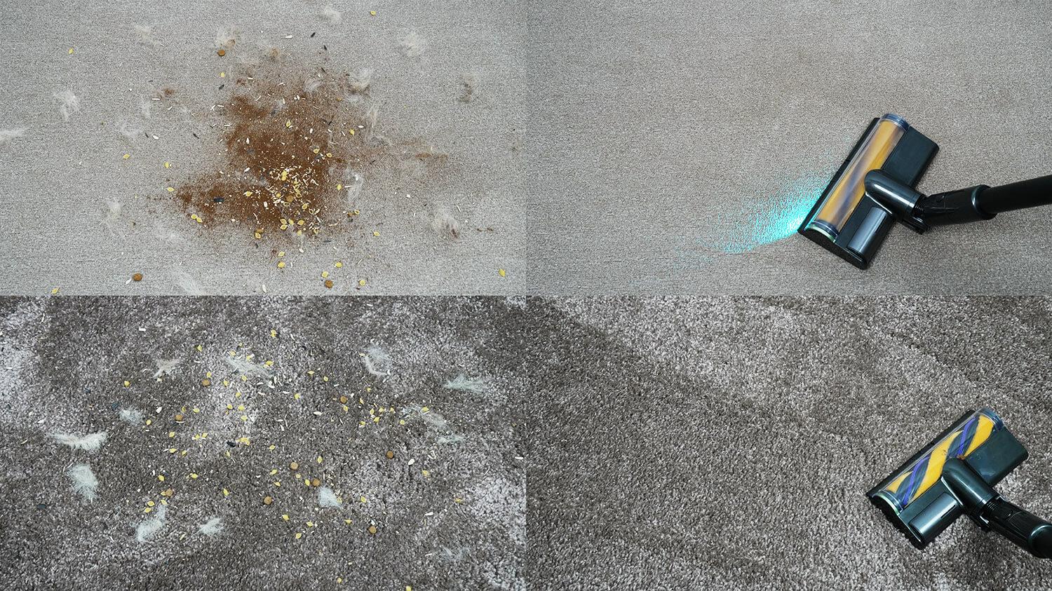 Tos pačios šiukšlės buvo išbarstytos ant trumpo plauko kilimo, ir „Dreame Z30“ tiesiogine prasme išsiurbė iš jo gyvybę. Tada jis kruopščiai išvalė vidutinio plauko kilimą.