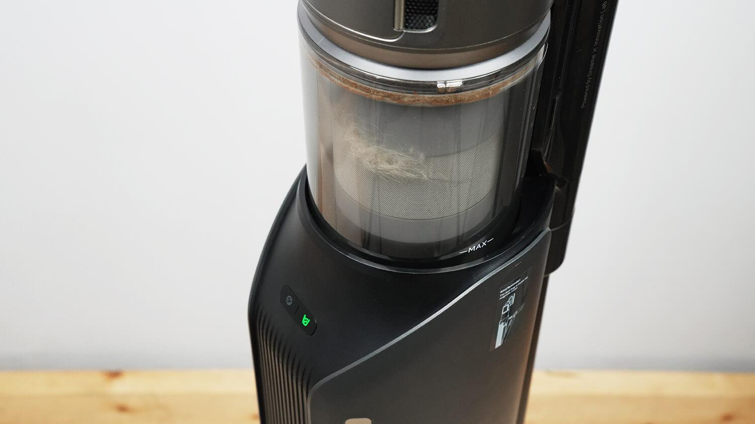 Jei stotelė pirmą kartą visiškai neištuština dulkių surinktuvo, galite paspausti rankinio savaiminio valymo mygtuką ir pakartoti procesą. Jei dulkių surinktuvas labai užsikimšęs ir stotelė jo visiškai neištuština, galite išimti dulkių surinktuvą, išimti filtravimo sistemą ir ištuštinti turinį iš kolbos. Apskritai tai paprastas procesas, o dizainas panašus į kitų prekių ženklų sprendimus.