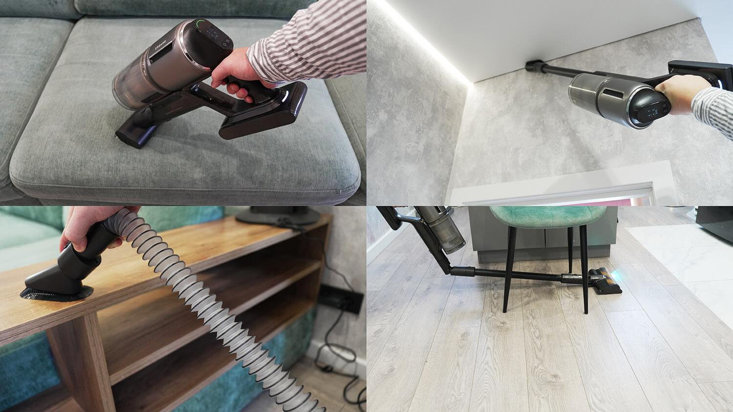 Taip pat verta paminėti, kad pilnas rinkinys leidžia išvalyti sofą, vietas, kurių nepasiekia pagrindinis antgalis, ir net automobilio vidų. O dėl lanksčios jungties galite valyti net po žemais baldais. Apskritai šis dulkių siurblys tinka įvairiems tikslams.