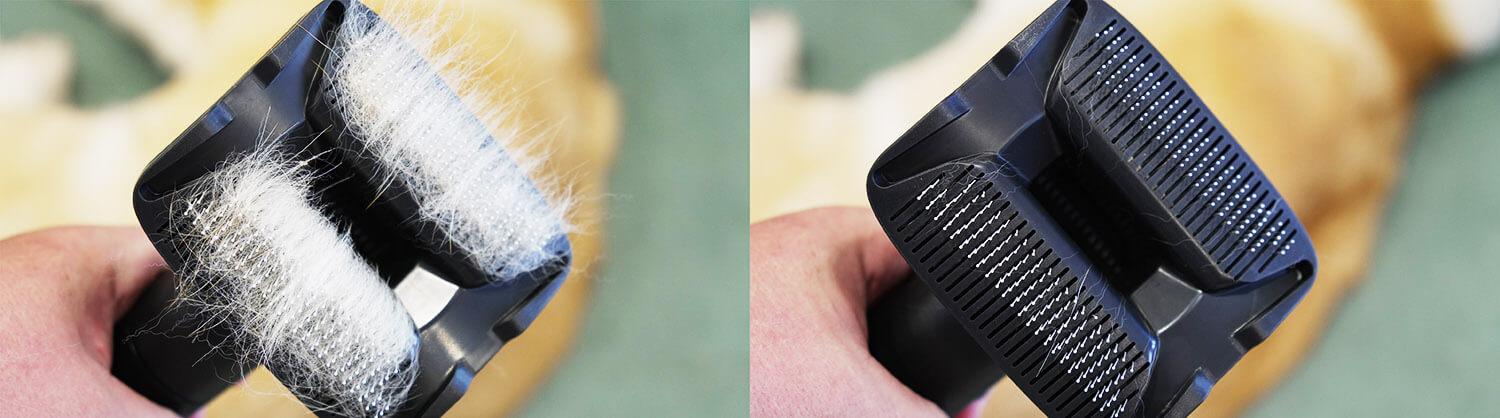 Ypatingo dėmesio nusipelno naminių gyvūnėlių plaukų šepetėlio antgalis su plaukų šalinimo platforma. Savo bandymuose parodysiu, kaip jis veikia. Naminių gyvūnėlių šeimininkai įvertins šią funkciją!