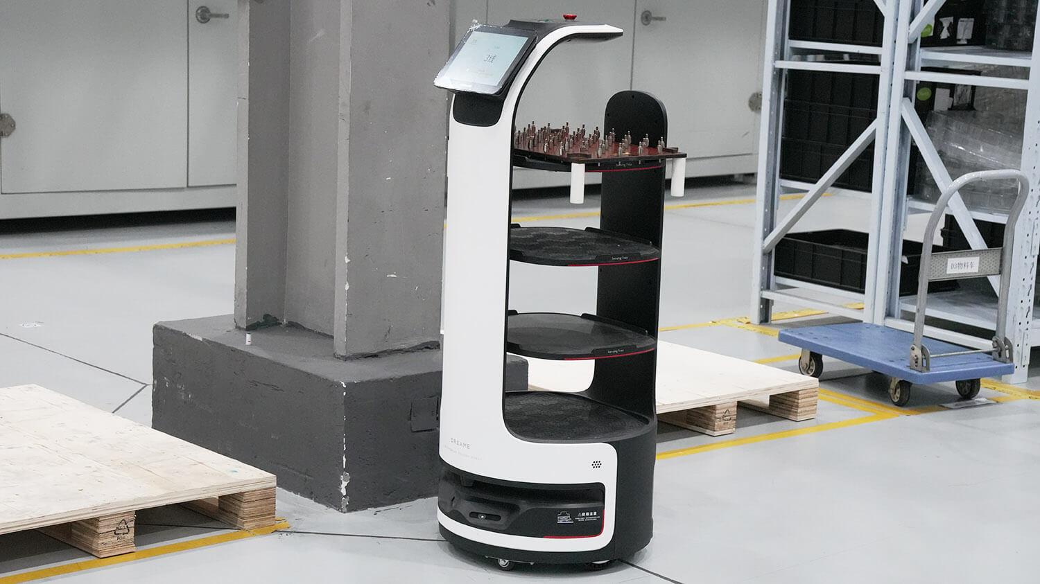 Be automatizuotų vežimėlių, robotas padavėjas gamykloje pristato įvairius produktus, įskaitant elektros variklius. Todėl „Dreame“ nusprendė vienu šūviu nušauti du zuikius: automatizuoti logistikos procesus gamykloje ir kasdien atlikti robotų padavėjų bandymus realiomis sąlygomis.