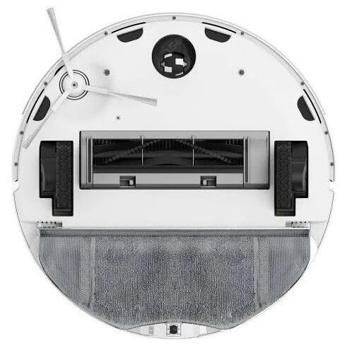 Roboto dulkių siurblio gale yra du dideli šoniniai ratai, centrinis ratas, pagrindinis turbo šepetys ir šoninis šepetys. Prie „360 S6 Pro“ apačios pritvirtinta platforma su drėgnu skudurėliu.