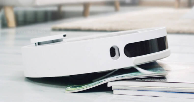 Pagrindinis navigacijos valdiklis, lazerinis atstumo ieškiklis, sumontuotas roboto dulkių siurblio viršuje. Valdymo mygtukai (maitinimas ir grįžimas į bazę) taip pat yra priekiniame skydelyje. Dulkių surinktuvo skyriaus dangtelis yra centre. Beje, patį dulkių surinktuvą lengva nuimti; dizainas yra labai gerai apgalvotas.