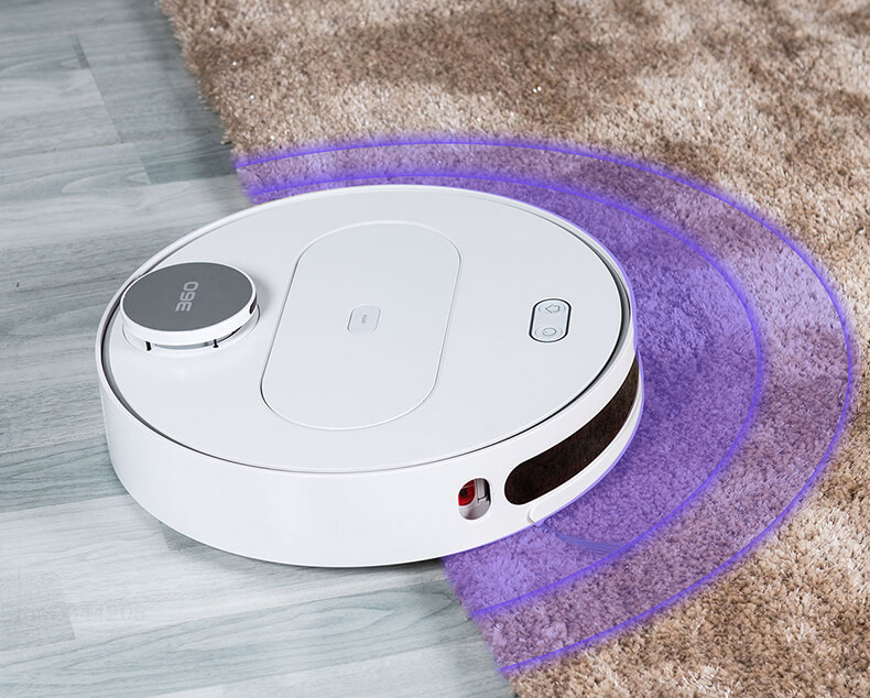 - Robotas dulkių siurblys turi „Carpet Boost“ valymo technologiją, tokią pačią, kokią naudoja „iRobot“ įrenginiai. „Carpet Boost“ padidina siurbimo galią valant kilimus (nuo 1300 iki 1500 Pa).