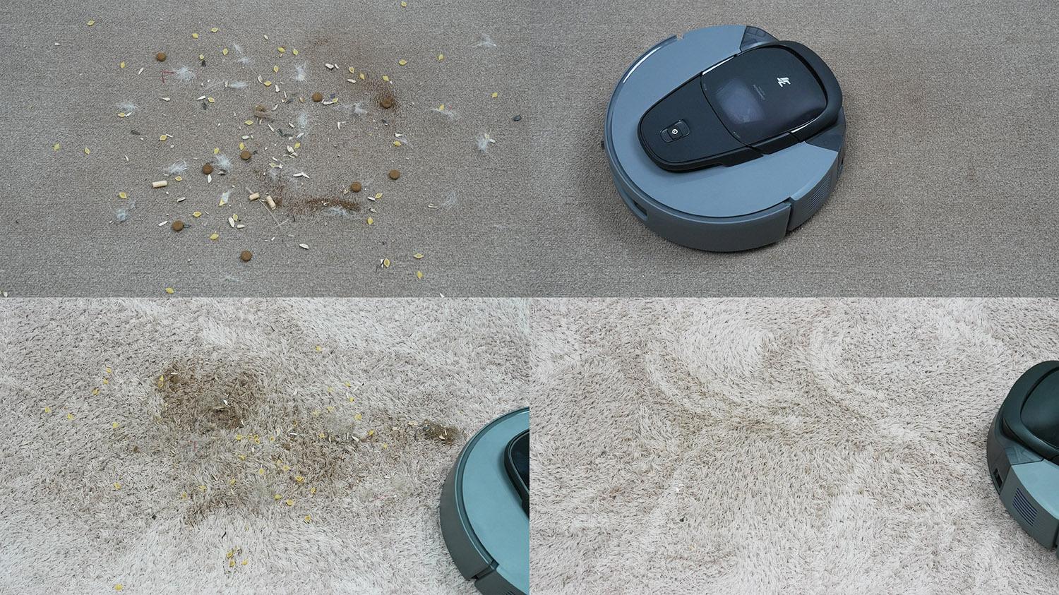 Be to, ant trumpo plauko kilimo buvo išbarstytos šiukšlės. Galiu pasakyti, kad 3i G10+ kruopščiai išvalė kilimą. Jis taip pat gali išvalyti vidutinio plauko kilimą, bet ne taip gerai. Krūvoje liko minimalus šiukšlių kiekis. Tikėtina, kad robotas tiesiog nebuvo pakankamai galingas.
