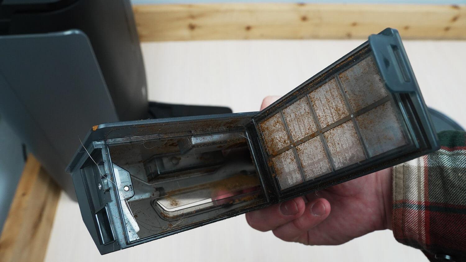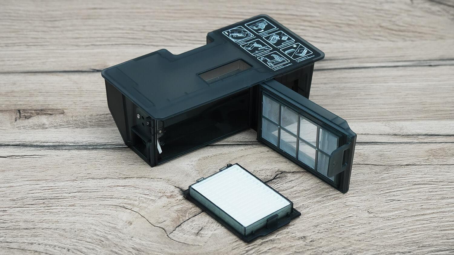 Filtravimo sistema pagrįsta plaunamu HEPA filtru ir tinkleliu. Robotas turi vandens baką, tačiau jis paslėptas korpuso viduje. Bako talpa yra 100 ml. Vanduo per stotelę pumpuojamas automatiškai.