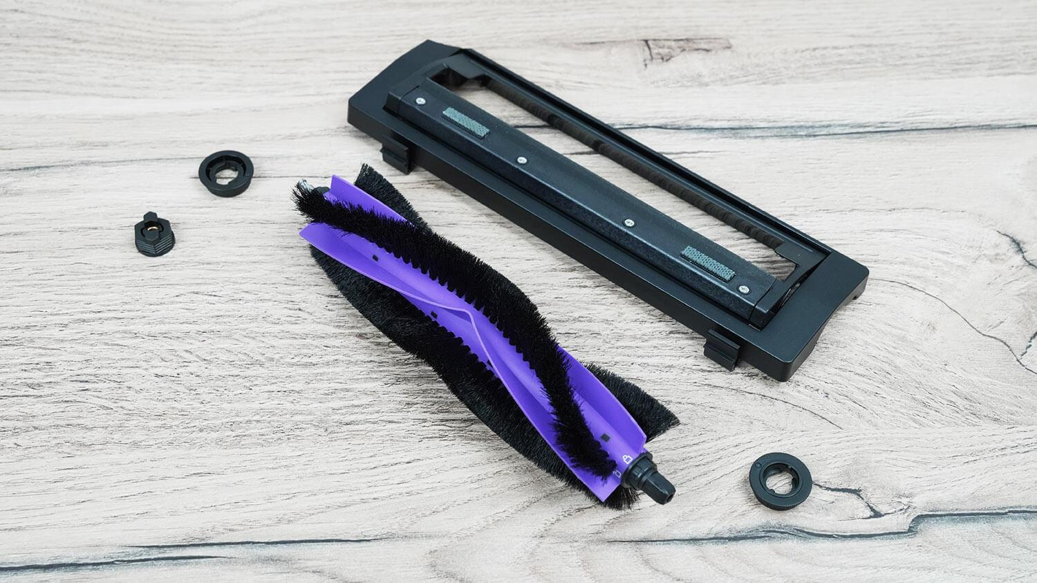 Grąžiname robotą į stotelę ir įjungiame turbo šepečio savaiminio išsivalymo funkciją. Po apkirpimo ant šepečio lieka nedidelis kiekis plaukų, tačiau jie jau nukirpti ir tiesiog nespėjo būti įsiurbti į dulkių surinktuvą. Dar svarbiau, kad ant šepečio galų vis dar lieka šiek tiek plaukų. Tai sunkus išbandymas robotui. Įprastai naudojant, šepetys, nors ir ne idealiai savaime išsivalo, atrodo pastebimai geriau nei robotai be plaukų kirpimo funkcijos stotelėje. Taigi, technologija yra efektyvi ir tai yra aiškus šio modelio privalumas!