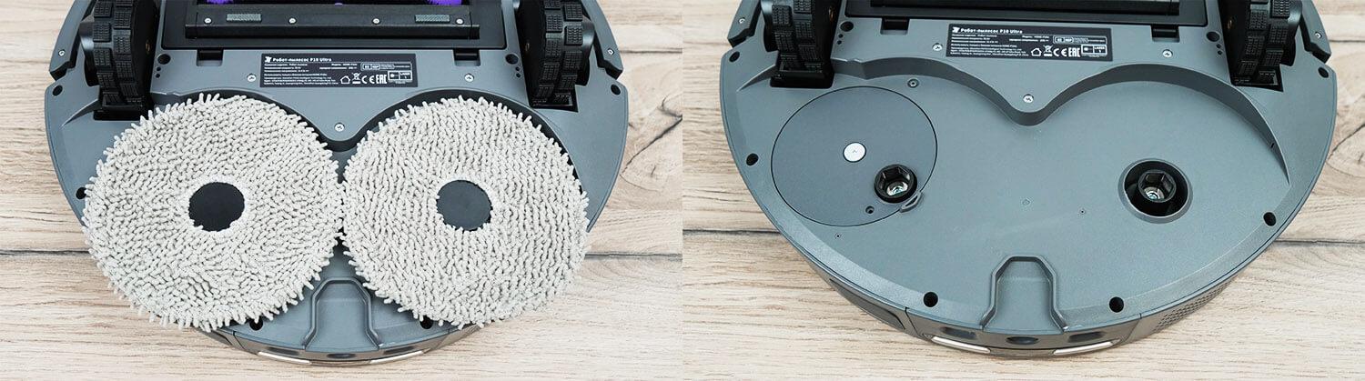 Vienas iš valymo pagalvėlių siekia roboto korpuso kraštą, todėl robotas gali valyti grindis iki pat grindjuosčių ir baldų. Be to, valant kilimus, abu pagalvėlės pakyla.