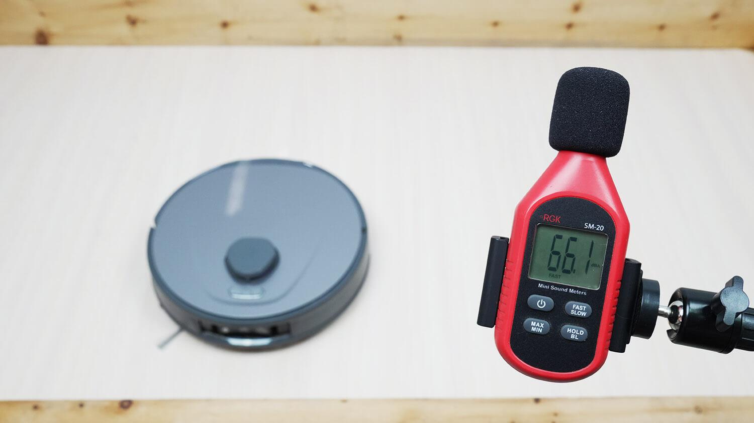 Kalbant apie triukšmo lygį, jis svyruoja nuo 60 iki 66,5 dB, priklausomai nuo pasirinkto veikimo režimo. Roboto triukšmo lygis iš tikrųjų yra labai žemas. Stotelės triukšmo lygis savaiminio valymo metu yra apie 79,5 dB. Ir tai yra šiek tiek padidėjęs.