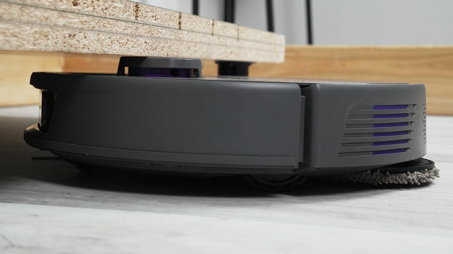 Taip pat patikrinau, ar navigacijos sistema gali valyti už užuolaidų ir draperijų – to negali padaryti dauguma „lidar“ robotų. Ne, šis robotas, kaip ir dauguma kitų robotų, nevalo už užuolaidų.