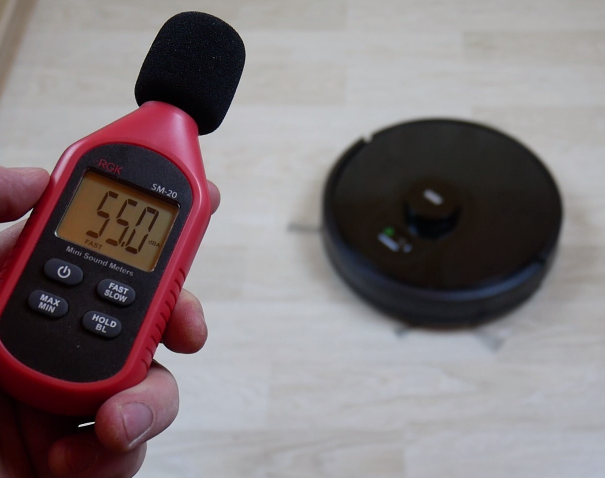 Galiausiai, išmatavome „Abir X8“ triukšmo lygį skirtingais režimais. Grindų poliravimo režimu, išjungus siurbimą, triukšmo lygis yra apie 55 dB, o tai yra gana tylu. Esant minimaliai galiai, triukšmo lygis yra apie 58 dB, esant vidutinei galiai jis siekia 61 dB, o esant maksimaliai galiai pikas buvo 64 dB. Apskritai robotas-dulkių siurblys yra gana tylus, atsižvelgiant į jo siurbimo galią.