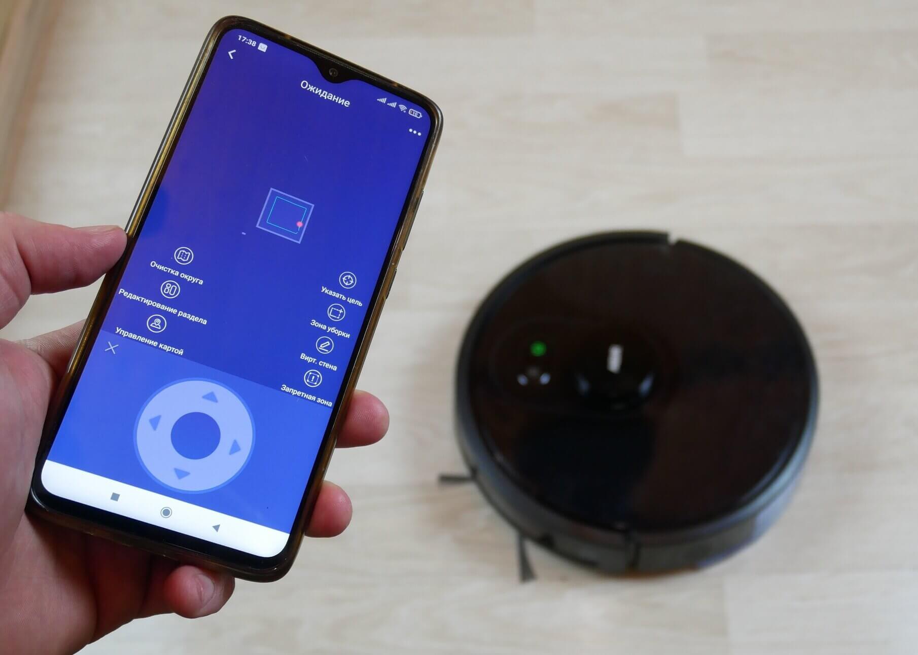 Naudodami nuotolinio valdymo pultą, galite įjungti ir išjungti robotą-dulkių siurblį, įjungti automatinio valymo režimą, priversti robotą grįžti į įkrovimo stotelę, rankiniu būdu nukreipti jį į norimą valymo vietą ir įjungti robotą naudodami centrinį mygtuką. Po valdymo svirtimi yra mygtukai, skirti reguliuoti siurbimo galią, taip pat vietinio valymo ir perimetro valymo režimams.