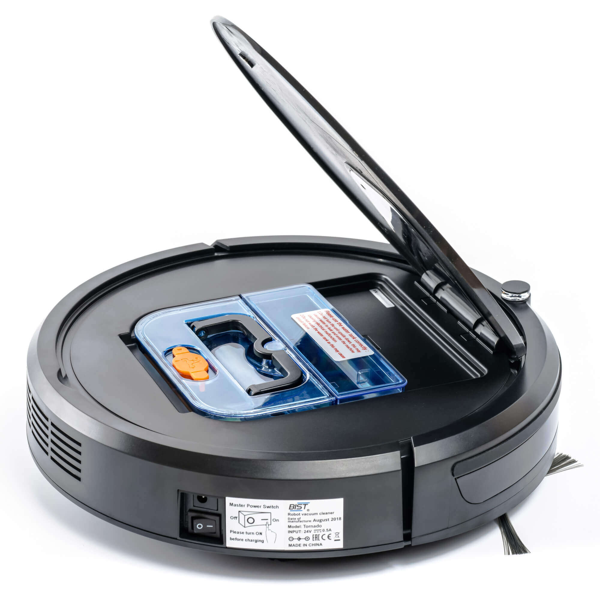 „Bist Tornado“ apatinis (valymo) skydelis turi du plačius pagrindinius ratukus, kurių danga neleidžia slysti net ant lygių paviršių. Priekyje yra pasukamas ratas. Įkrovimo gnybtai yra abiejose ratuko pusėse (maitinimui, kai prietaisas prijungtas prie doko).