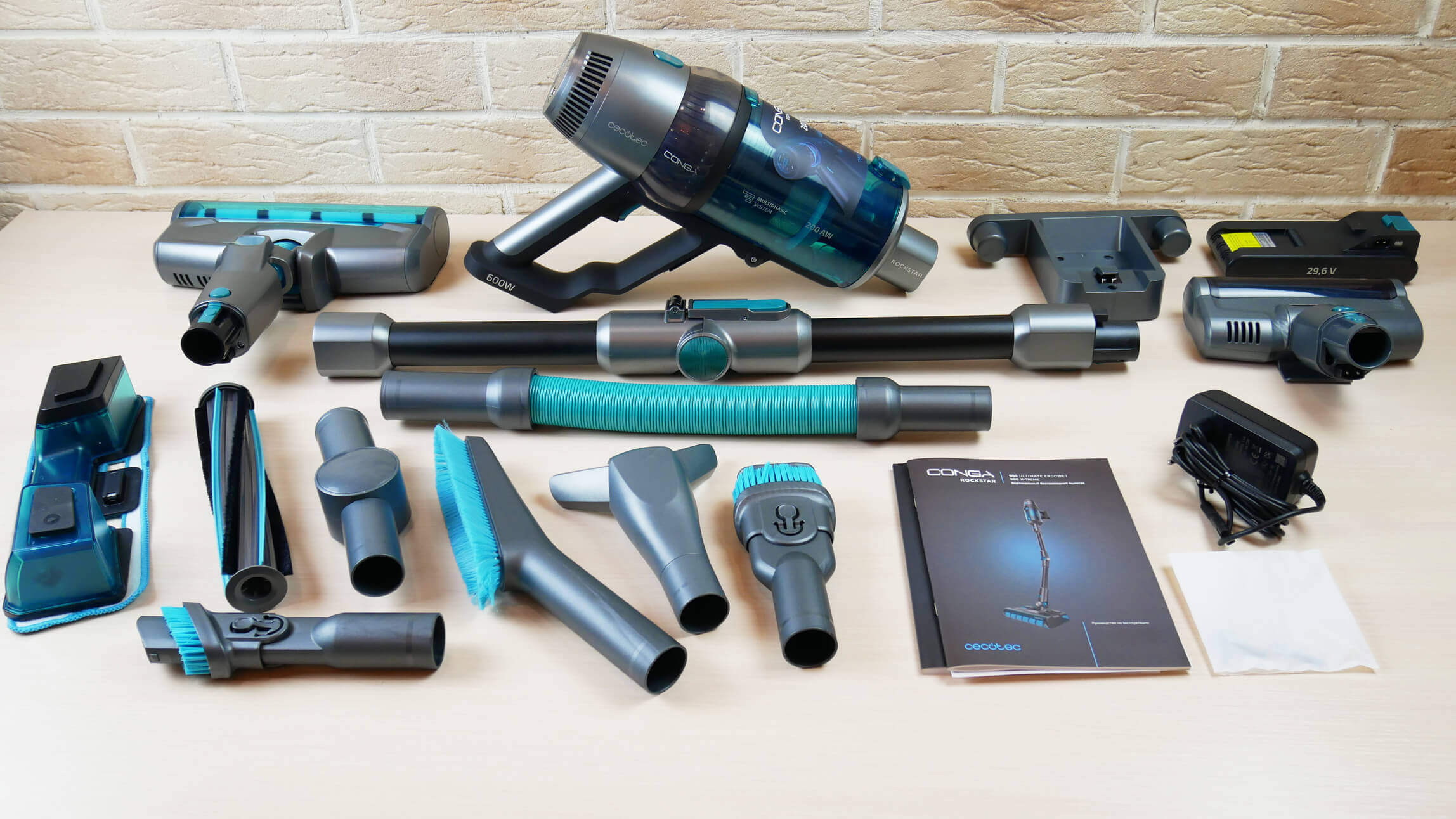 Taip, pakuotė yra itin išsami. Joje yra visi įmanomi priedai įvairioms valymo užduotims. Tai yra pagrindinis „Cecotec Conga RockStar 900 Ultimate ErgoWet“ privalumas.