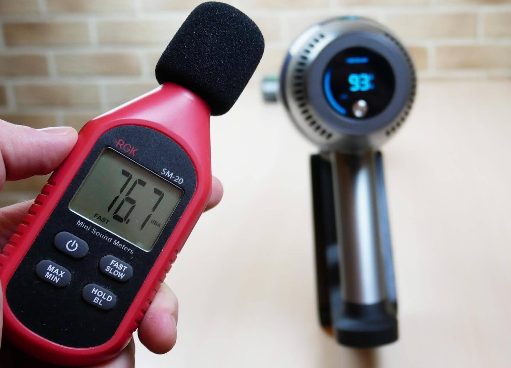 Pereikime prie bandymų. Pirmiausia patikrinsime „Cecotec Conga RockStar 900 Ultimate ErgoWet“ triukšmo lygį skirtingais režimais. Esant minimaliai galiai, triukšmo lygis yra apie 76 dB, vidutiniu režimu jis pakyla iki beveik 80,5 dB, o esant maksimaliai galiai, pikas buvo 81,3 dB.