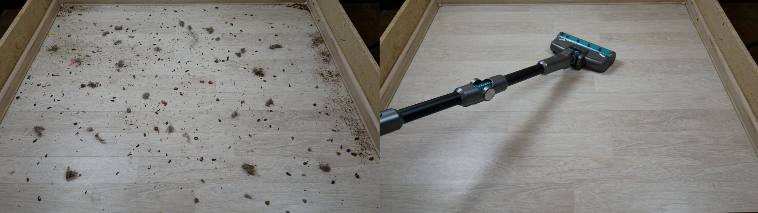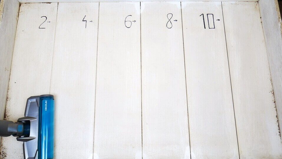 „Cecotec Conga RockStar 900 Ultimate ErgoWet“ pasižymi labai didele siurbimo galia. Net ir naudodamas vidutinę galią, jis sugebėjo išsiurbti šiukšles iš 10 mm tarpo. Manau, kad realiose namų ūkio situacijose nereikės naudoti siurblio maksimaliu galingumu, o tai prailgins jo baterijos veikimo laiką.