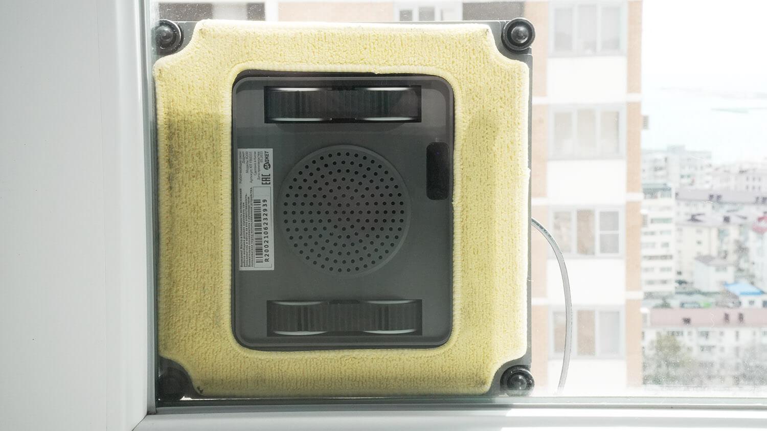 Čia pažymėsiu, kad, mano nuomone, robotai su apvaliomis valymo pagalvėlėmis geriau pašalina nešvarumus dėl besisukančių platformų. Dar vienas visų langų valymo robotų, įskaitant ir šį, trūkumas yra tas, kad kampai lieka neplauti dėl juose esančių kraštų aptikimo jutiklių. Galiausiai, reikia išmokti ištempti pagalvėles palei korpuso kraštus, kitaip robotas gali palikti neplautų vietų palei langų rėmus, jei pagalvėlė nepasieks krašto.